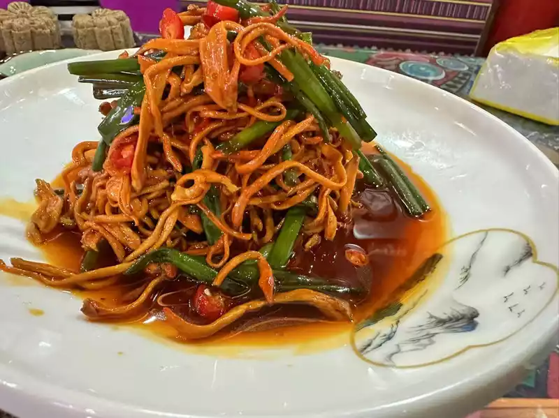 Another trip to Sichuan. This time I was very lucky and got a special air ticket in seconds. I made an appointment to be picked up at the airport early in the morning. The early flight Sichuan Airlines 3U6838 was from Tianjin Binhai at 6:55 to Chengdu Tianfu at 9:50. After landing in Chengdu at 10 o'clock, we took the subway to Wenshu Temple for lunch. We had delicious Dongzikou Zhang Lao Er Liangfen and Long Chao Shou.
