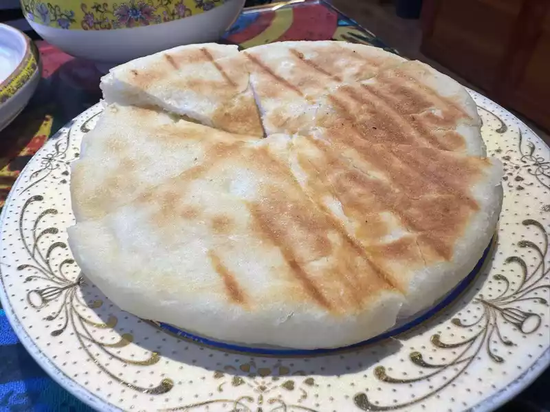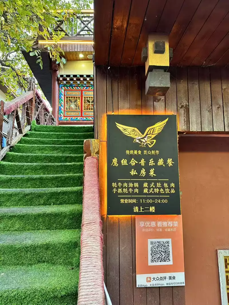 After checking in, I took a quick rest and went out to look for food at five o'clock. I walked along the river in Zhangzha Village and the temperature was very comfortable. I found the Jiuzhaigou Eagle Group Music Tibetan Dining Bar. I bought a set meal in advance and the boss showed me the coupon code and waited for the meal to begin. The set meal included beef quilt, monk buns, tsampa, cold cordyceps flowers and a pot of butter tea, basically including Tibetan snacks,