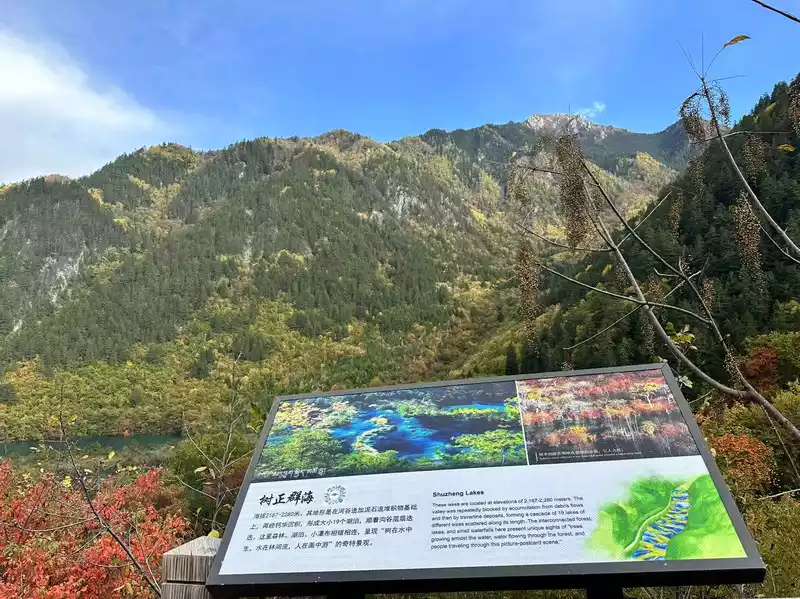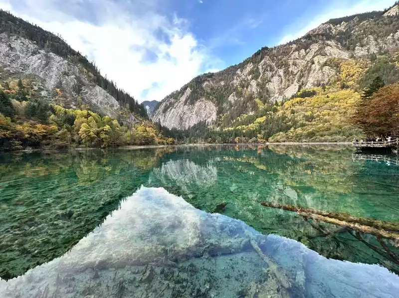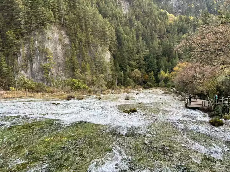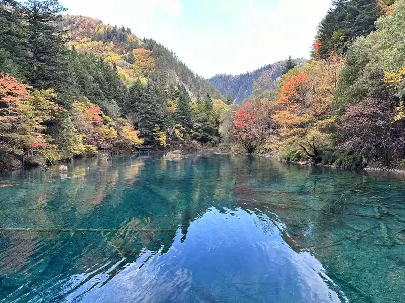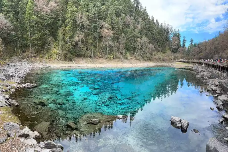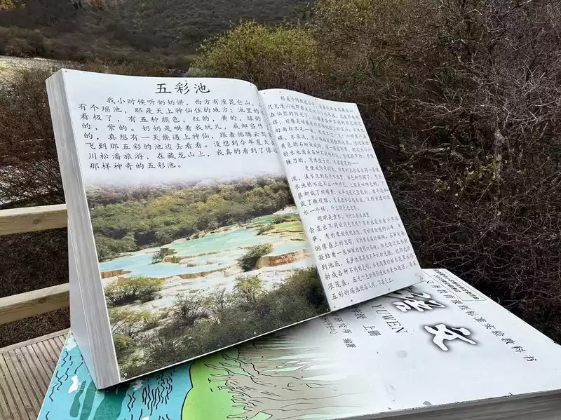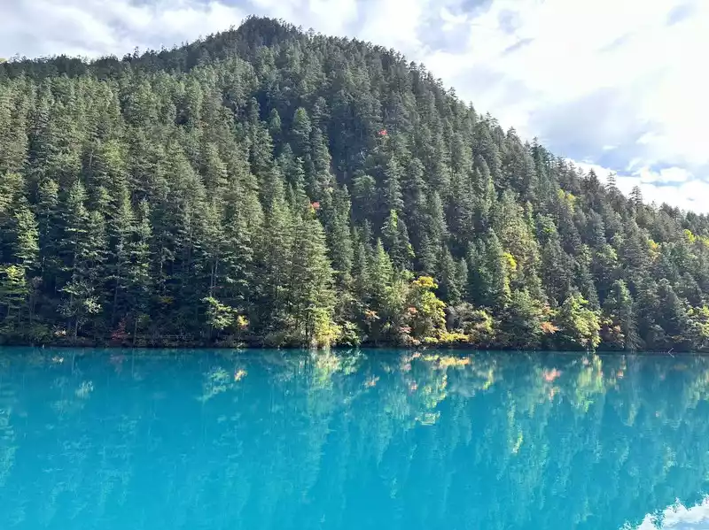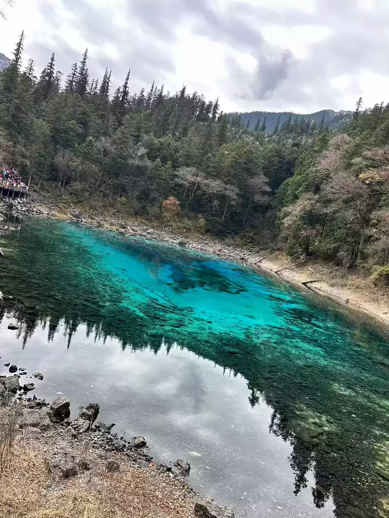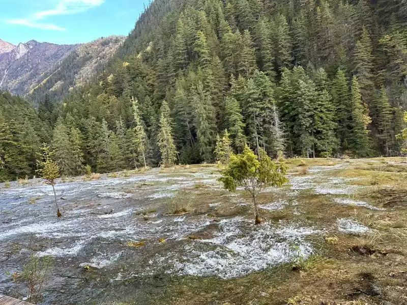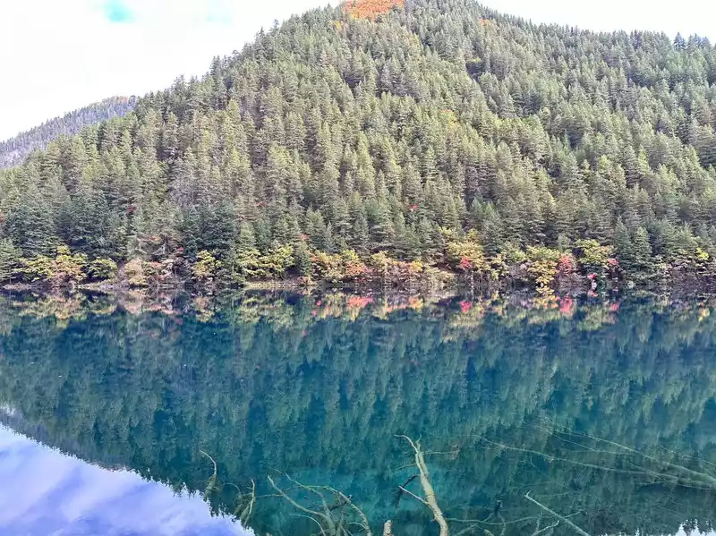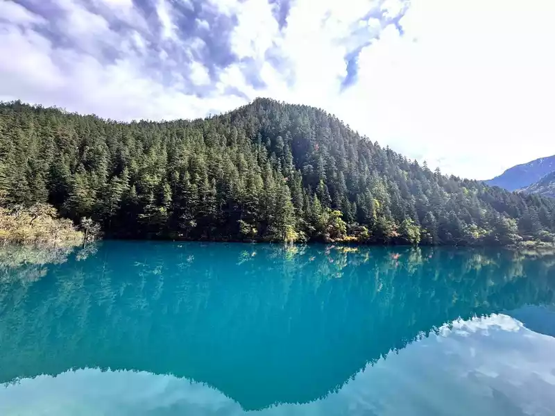 Then follow the road signs and walk about 800 meters to Wucai Pond (Wucai Pond is the smallest lake in Jiuzhaigou, but the most colorful one).