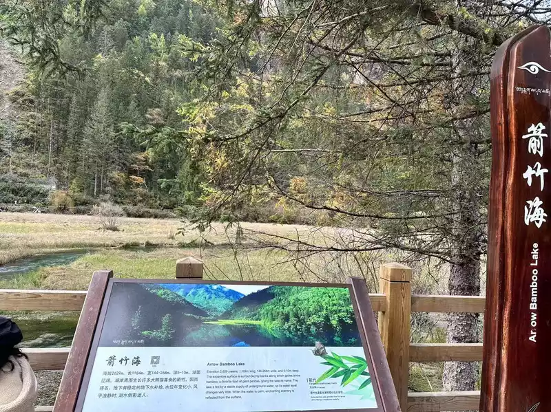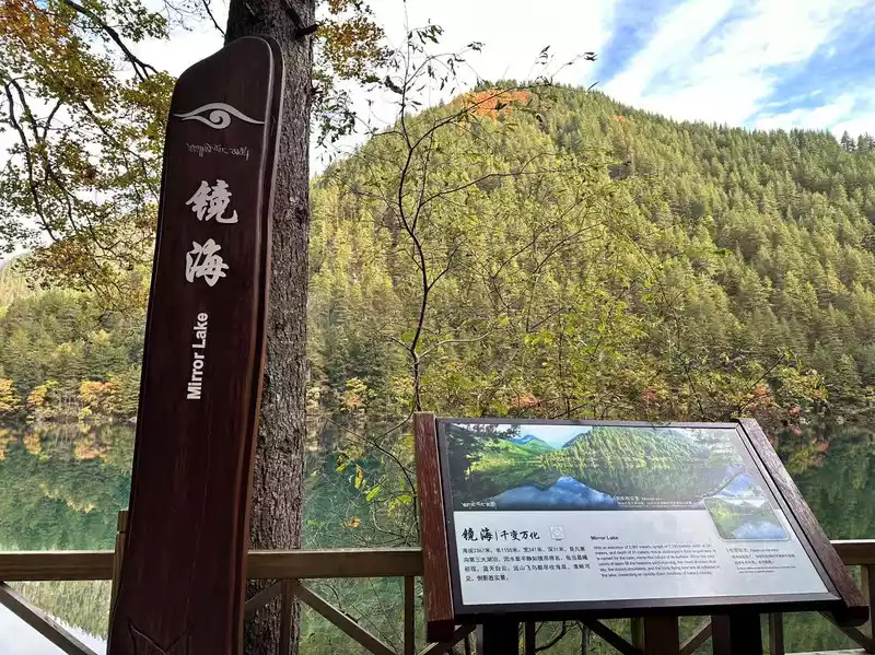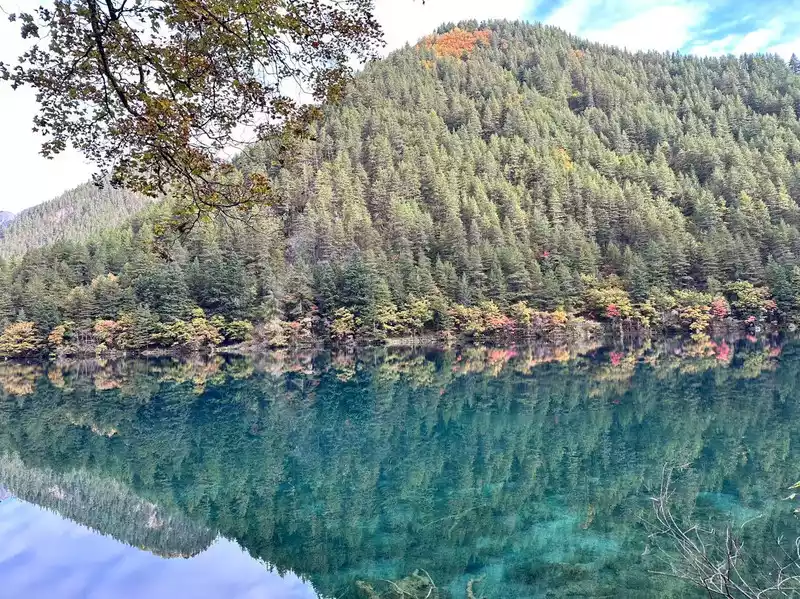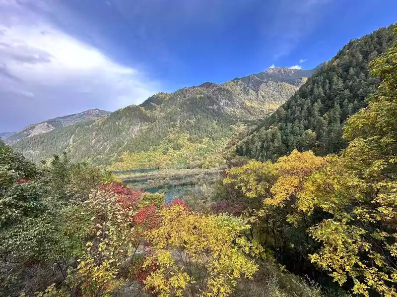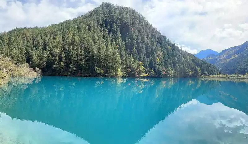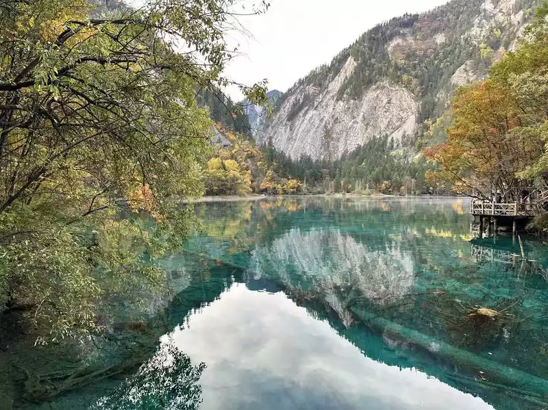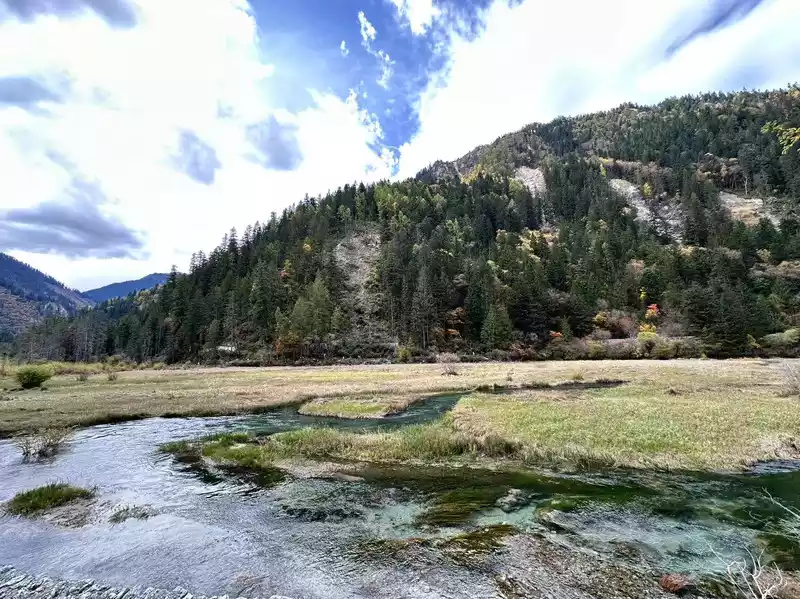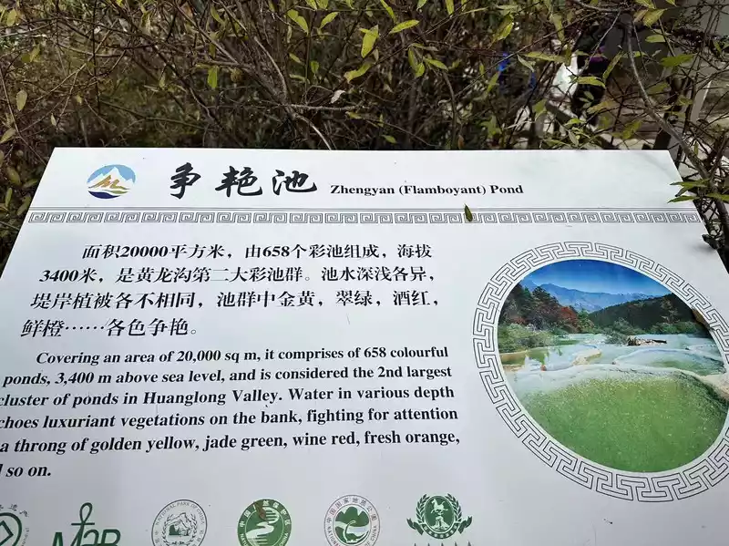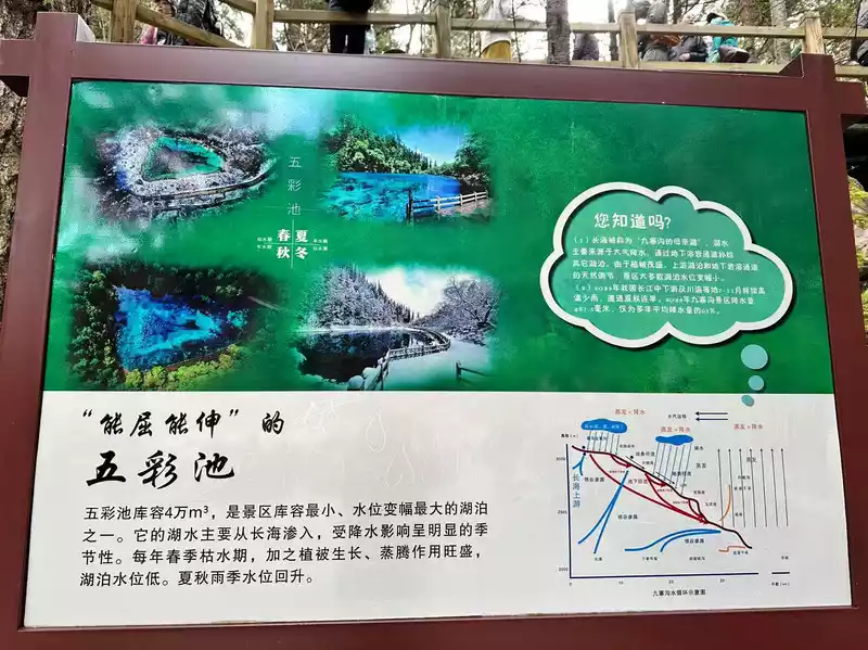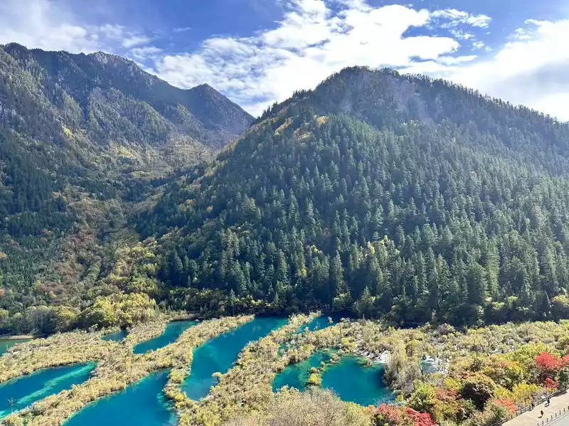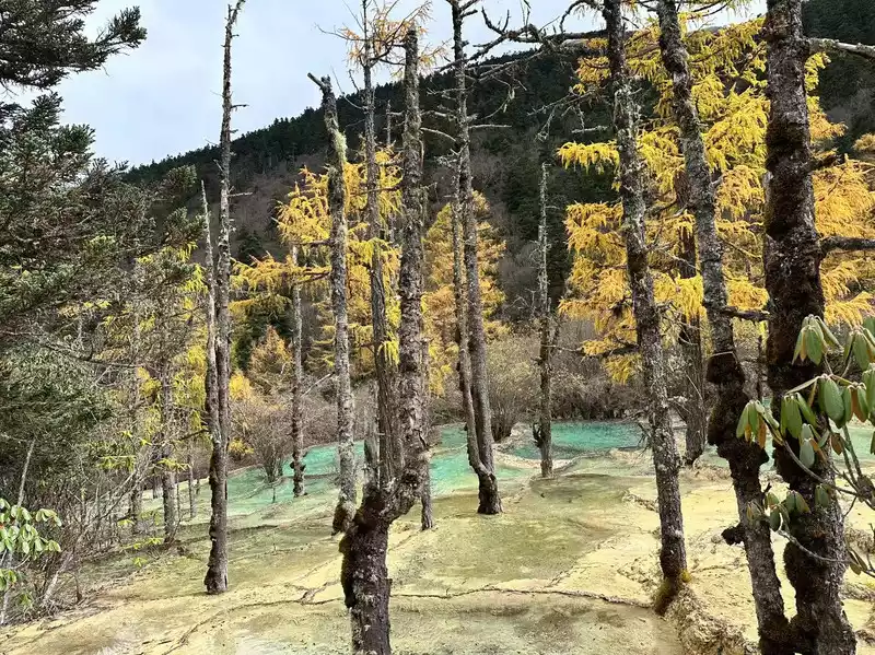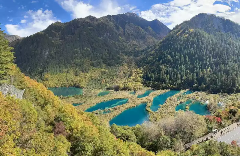 Then follow the road signs and walk about 800 meters to Wucai Pond (Wucai Pond is the smallest lake in Jiuzhaigou, but the most colorful one).
