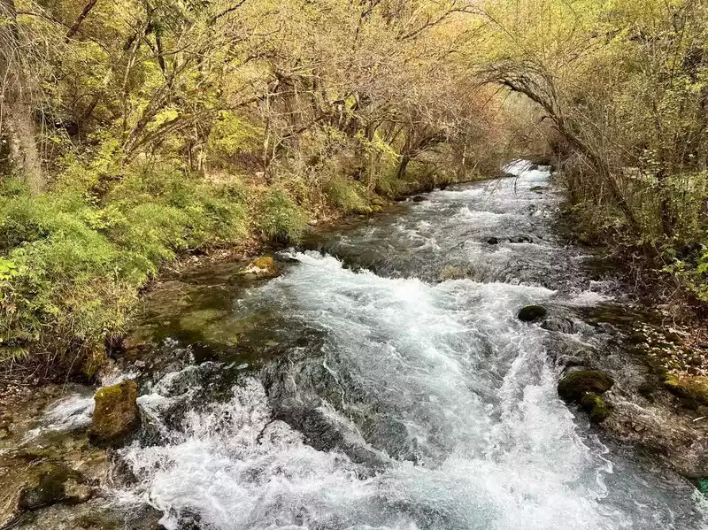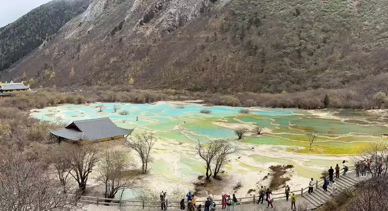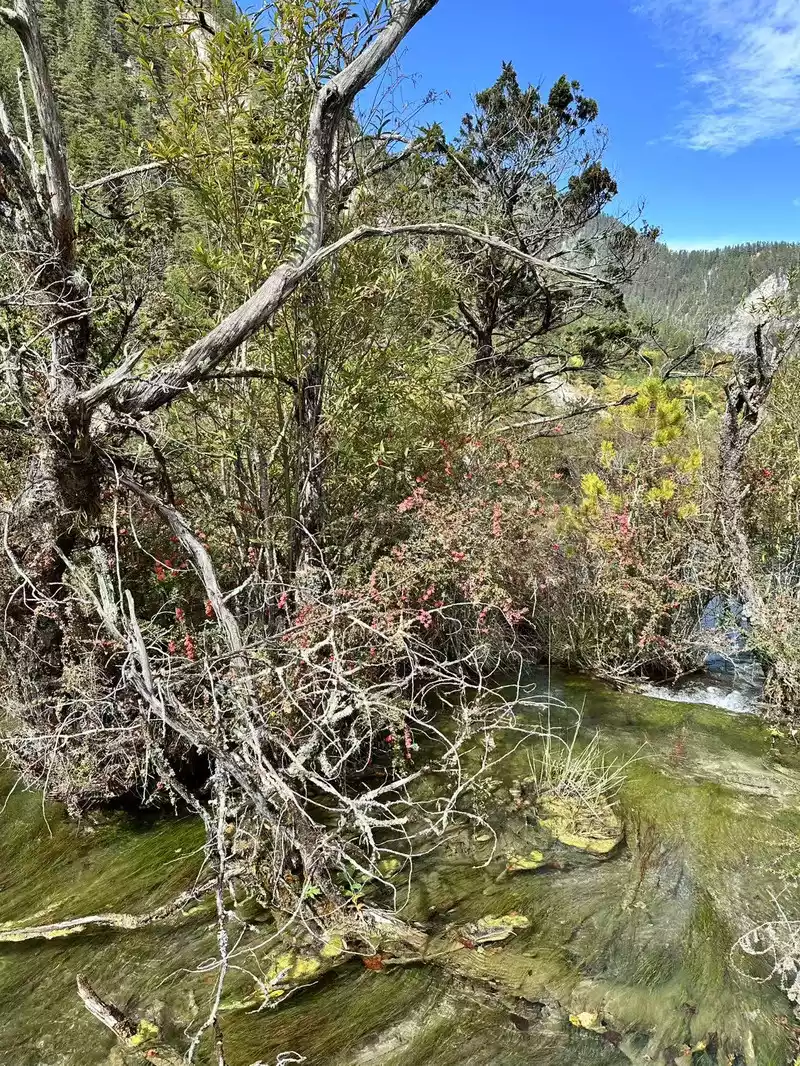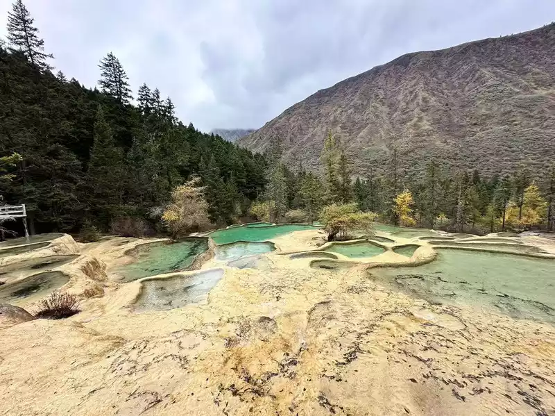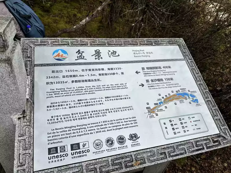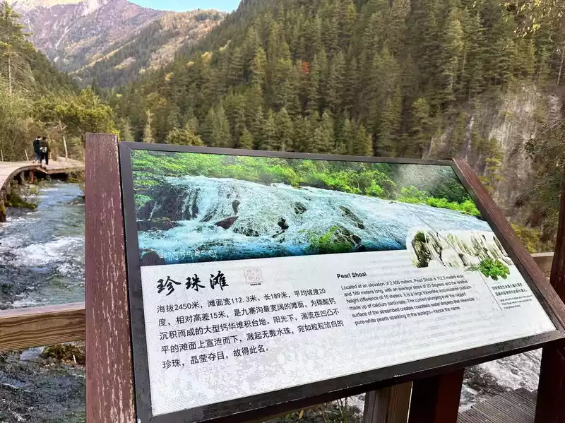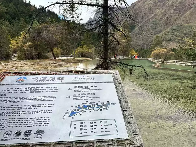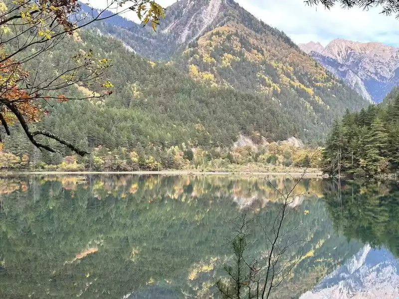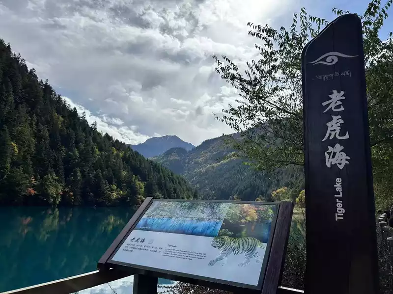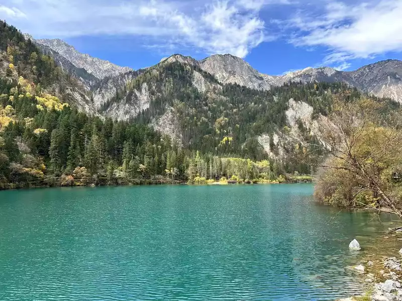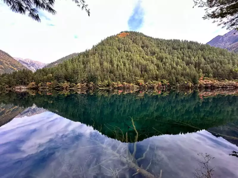 Then follow the road signs and walk about 800 meters to Wucai Pond (Wucai Pond is the smallest lake in Jiuzhaigou, but the most colorful one).
