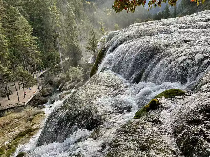 Because we were afraid of being exhausted at first, we chose to visit Wuhuahai without walking. After visiting Wuhuahai, we took a bus to the downstream bus station for about two minutes to Pearl Beach. We got off the bus and walked along the surface of Pearl Beach, and then continued down the stairs to admire the waterfall from the side and walk to the foot of the waterfall to enjoy the Pearl Beach Waterfall.