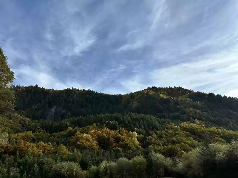 As the high-speed train is scheduled to return to Chengdu at 3:30 pm today, the itinerary arranged in the morning is a four-hour tour of Huanglong Scenic Area. Considering that the transportation is not very convenient, we chartered a car in advance to pick us up at the hotel in the morning, took us to Huanglong and waited for us to finish our tour before sending it to the high-speed rail station. The journey from Jiuzhaigou to Huanglong takes about two hours. I was afraid of traffic jams, so I still got up early and planned to leave at 7 o'clock. When I arrived at Huanglong Scenic Area at about 9:30, I could ask the driver to take me to the cableway entrance and queue up directly. There were not too many people queuing up at the cableway entrance around 9:30, and it took almost half an hour to get on the cableway.