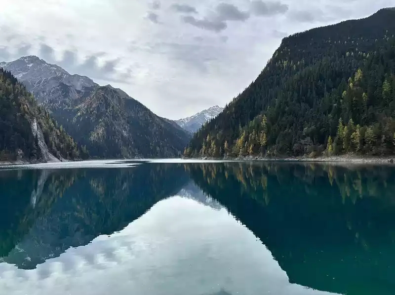 After returning, continue to Nuorilang Center Station and take the bus to Rhinoceros Sea. You can walk one kilometer in the opposite direction during the Colorful Forest Season to enjoy the colorful forests. You can enjoy the dreamy reflections of the snow-capped mountains at the Rhinoceros Sea Observation Deck.