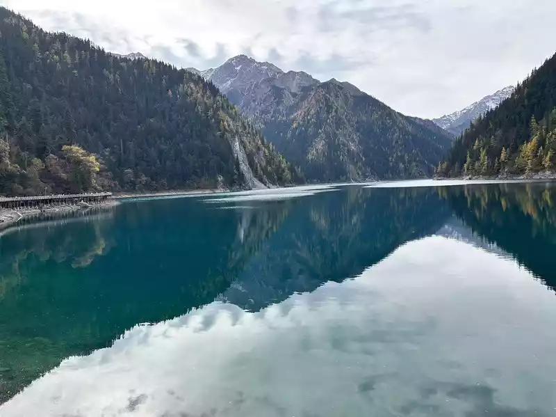After the tour, return to Nuorilang Center Station and take a bus to the Zuogou Changhai direction. Take the left side of the bus to enjoy the seasonal seas up and down along the way, and visit Changhai at the highest point (get off the car and go down the stairs on the right, take the "One-Armed Old Man Cypress Observation Deck", and then walk right down to the lowest plank road closest to the lake for a tour, about 1.4KM). Changhai is called the mother sea of Jiuzhaigou and is the highest sea in Jiuzhaigou.