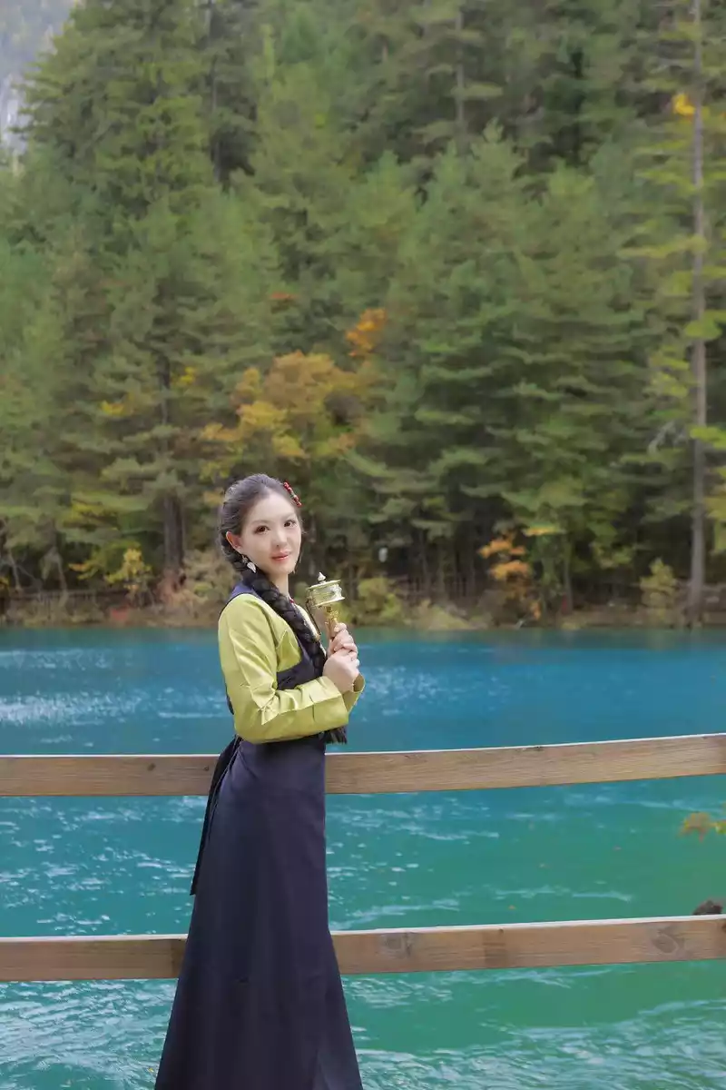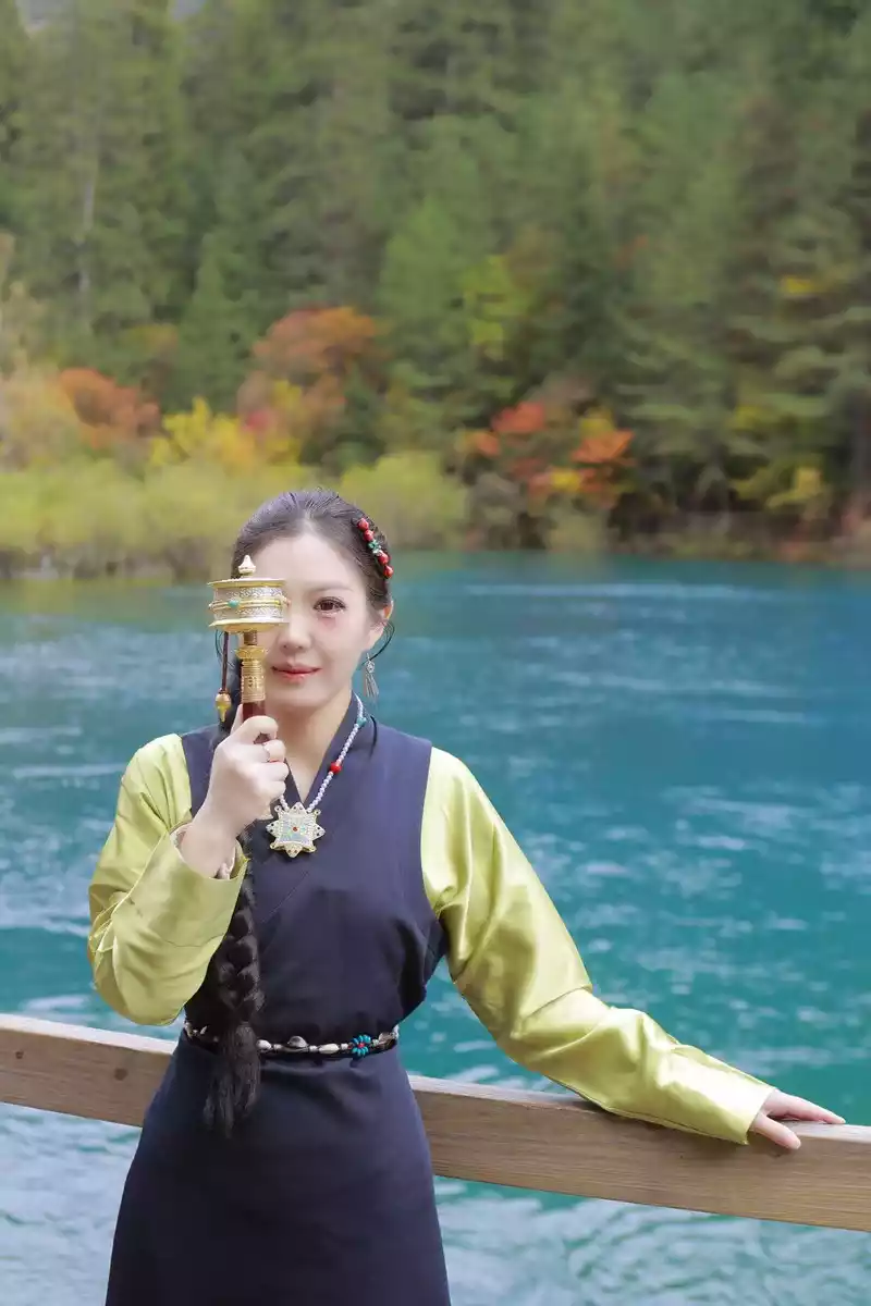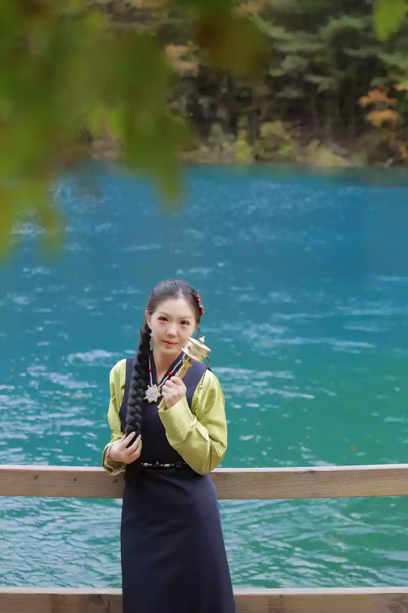 There are many travel photography shops in Shuzheng Village. How can you not take a group of Tibetan style photos when you go to Jiuzhaigou? I found one and took a group of Tibetan style Bo La groups. Haizi really made a great photo and was happy✌