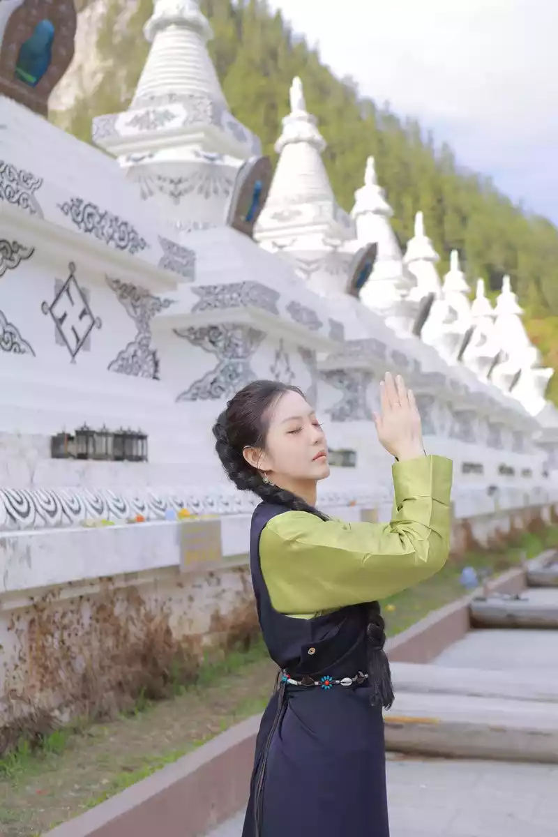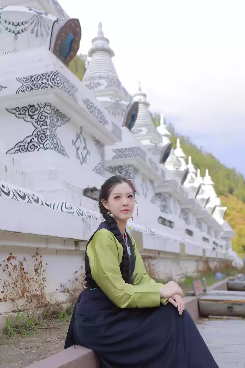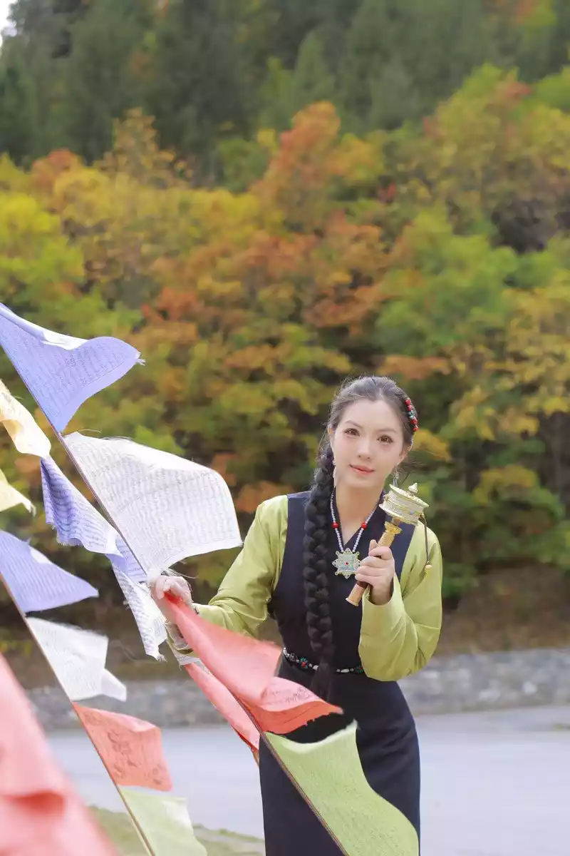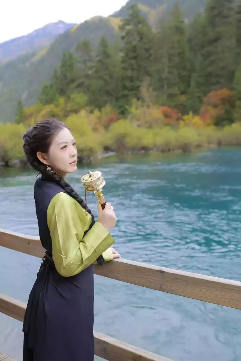 There are many travel photography shops in Shuzheng Village. How can you not take a group of Tibetan style photos when you go to Jiuzhaigou? I found one and took a group of Tibetan style Bo La groups. Haizi really made a great photo and was happy✌