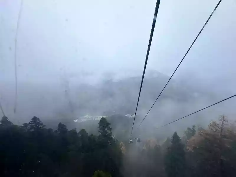 Arrive at the cable car station and take the cable car up the mountain. Then there is a section of the mountain road.