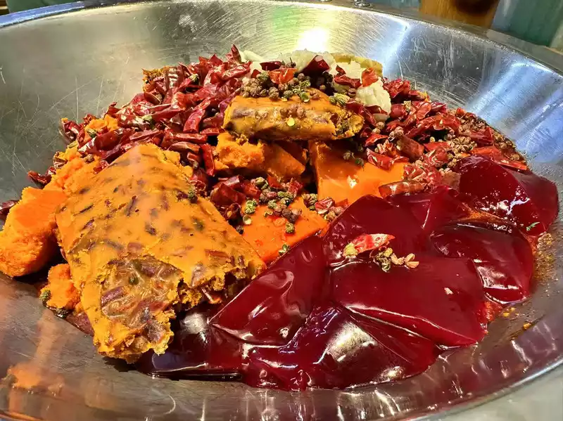 The whole journey took more than four and a half hours. We left the scenic spot on time and met the driver at the high-speed rail station at around two o'clock. We arrived at Huanglong Jiuzhai Station by half an hour's drive. The C5754 train departed on time at 15:31 and returned to Chengdu. We arrived at Chengdu East Station at 17:54 and took the subway to Chunxi Road Meihao Hotel to check in. After putting away our luggage, we simply packed up and went to "Old Alley Yuan Hotpot" for a delicious meal of authentic Chengdu old hotpot.