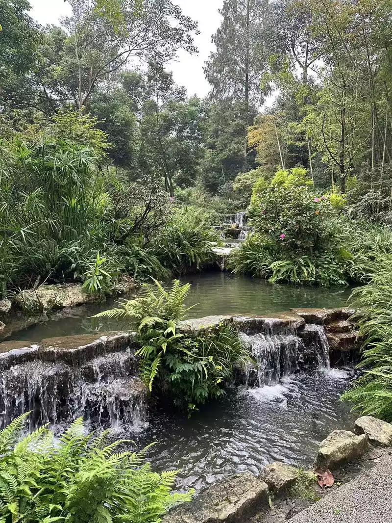 You can visit the Zhengyan Pool, Salo Yingcai Pool, Mirror Reflection Pool, Bonsai Pool, Waterfall, and Welcome Pool in sequence,