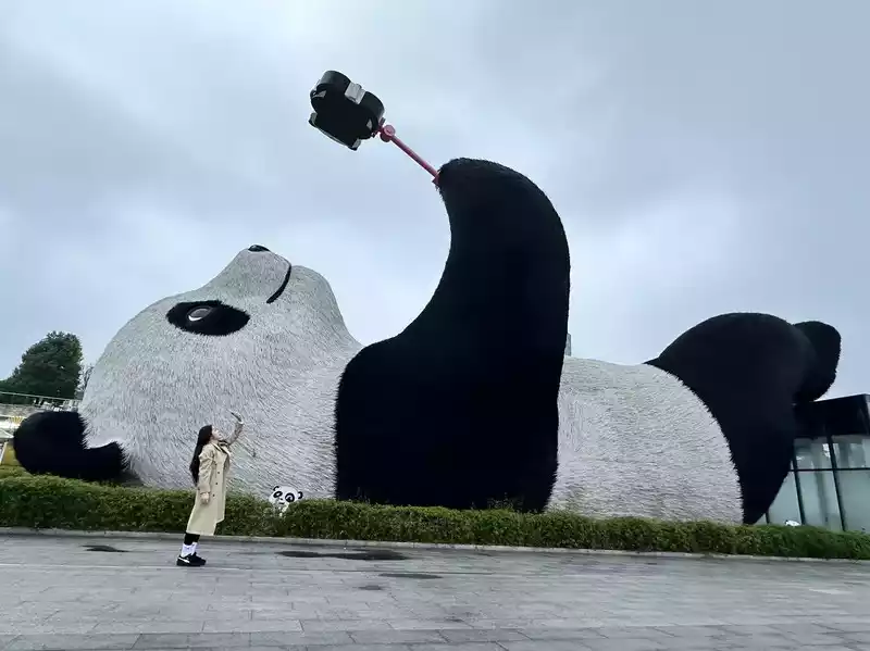 I got up early on Monday and went to Yangtianwo Square to check in and take selfies with the giant pandas.