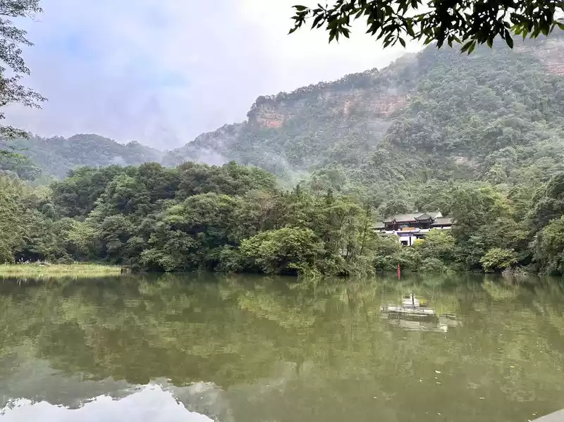 After entering the mountain gate, walk to Yuecheng Lake. If the boat is running, you can take a boat to the cable car station for 5 yuan/person, or walk around Yuecheng Lake, which is not too far.