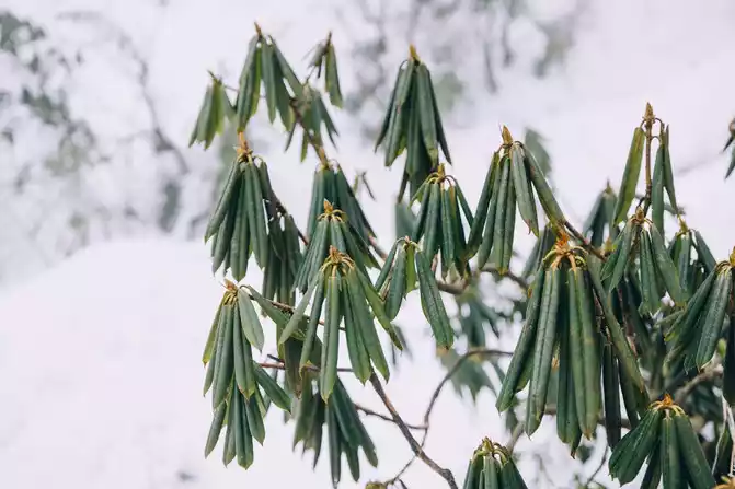 The rhododendron forest at six o'clock in the morning is the secret theater of the lone traveler. The night snow is fresh, each branch is wrapped in a translucent ice shell, and fine snow falls when the wind passes, like unsealing a letterhead from the Arctic. Occasionally, early jays skim the branches, and the fallen snow foam floats in the beams, making people suspect that they have broken into the wardrobe secret realm of "The Chronicles of Narnia".