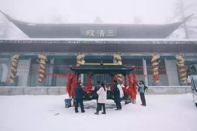for blessings On the top of Wawu Mountain, the Sanqing Hall stands quietly, as if isolated from the hustle and bustle of the world. The cornices and arches are quaint and solemn, carrying the traces of time. Stepping into it, the Sanqing Icon is solemn and solemn, and the whole body exudes divine brilliance, which makes people feel awe. The cigarettes seem to tell the thousand-year-old Taoist heritage, bringing peace and comfort to every visitor.