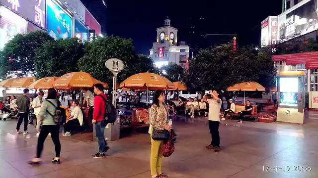 When I returned to the hotel in the evening, I passed by Jiefangbei Pedestrian Street, which is a bustling commercial street.