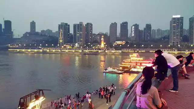 In Chaotianmen Square, you can see the confluence of the two rivers of the yellow Yangtze River and the green Jialing River, which is a unique scenery.
