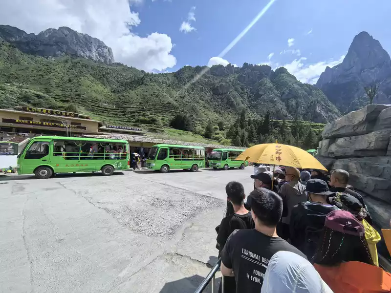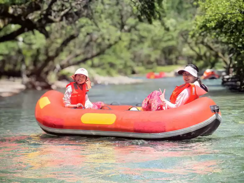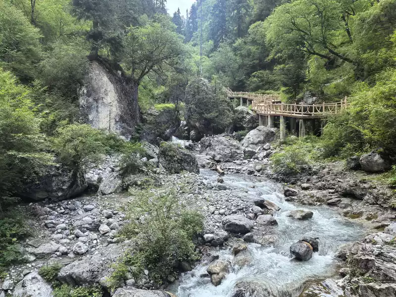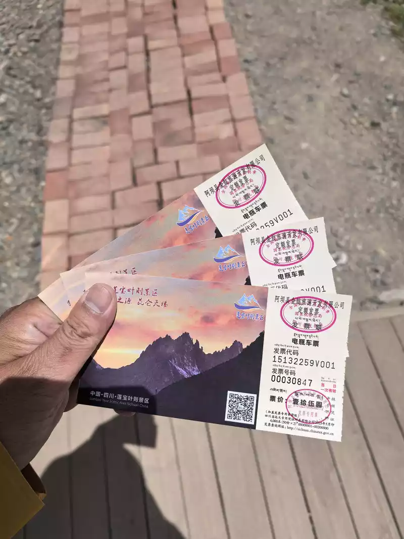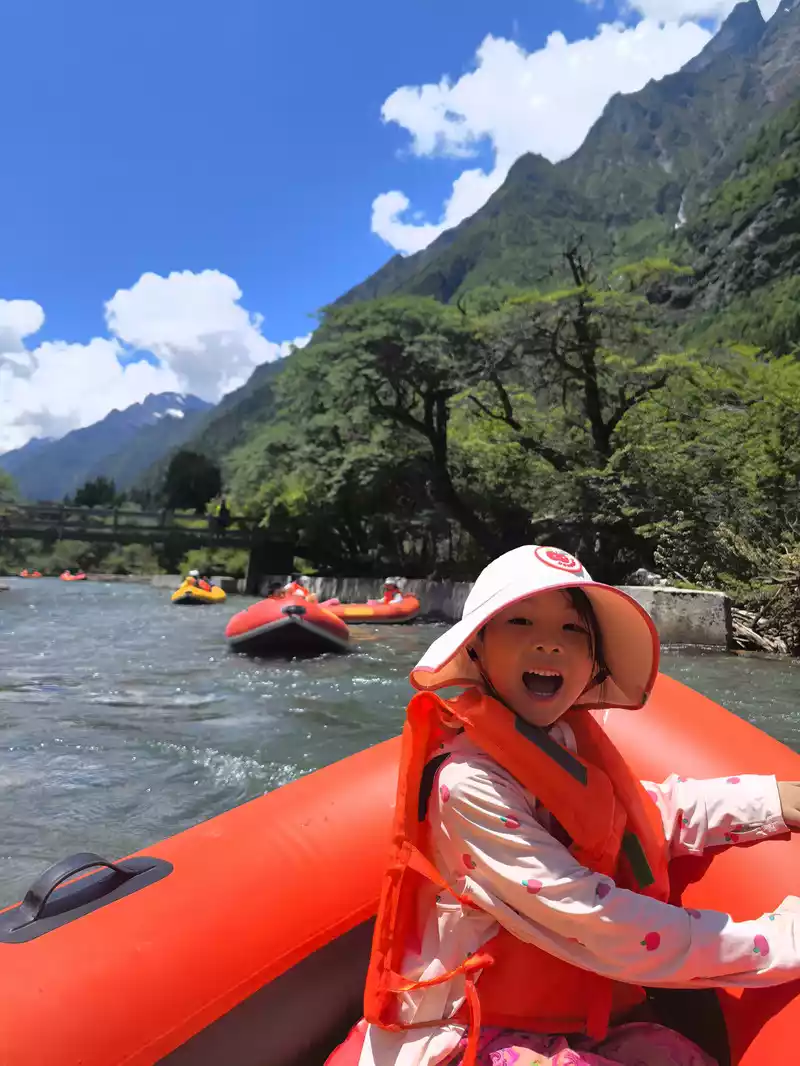 Scenic Area in Aba , Sichuan , yes, yesterday I drove the road for a day, and it is still in Aba Prefecture, this ditch is relatively less hiking, and the scenic spot is perfect.Although the scenery is somewhat similar to the scenery of Gannan a few days ago, it is still very beautiful, and the rafting is particularly interesting, and the two children have to sit again. We arrived at 9 o'clock, the car parked in the underground parking lot at the entrance of the scenic spot, the parking lot came up to the entrance, and if you came late, you had to park in the nearby parking lot, after purchasing tickets online, check your ID card and take the scenery delivery car all the way to the end of the redwood forest, and every scenic spot in the scenery delivery car has voice and car video synchronous explanation. Tickets are 150 for adults, 110 for students, and free for our second treasure, a total of 410 yuan. Rafting is 90 yuan per person, and the second treasure is free, a total of 270 yuan. When you arrive at the redwood forest, you can take the scenery and take the car to go back, there is a transfer station in the middle where you can eat and rest, and you can also buy some souvenir postcards to stamp and commemorate or something.