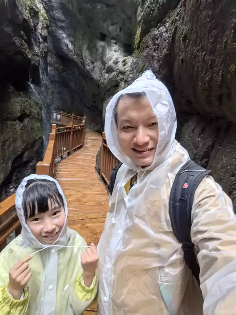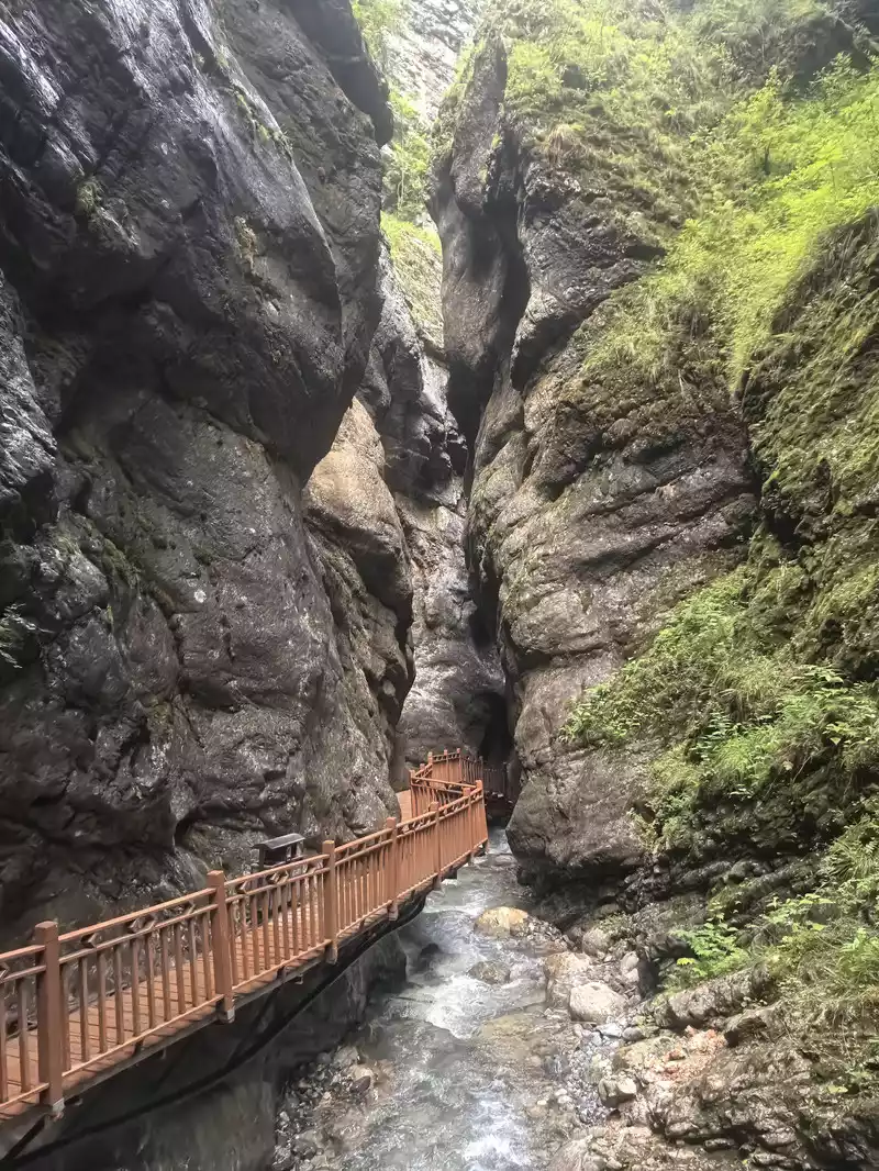 We arrived at the gate of Huahu at about half past two in the afternoon, the sky was clear, very hot, to be precise, it was very sunny, the scenic spot ticket plus the scenic delivery car was 280 yuan for our family of four. I made a guide before saying that this scenic spot is a pit - "you don't have to go on rainy days, and you don't dare to go on sunny days", which means that this scenic spot is very weather-eating, and there is no scenery on cloudy days and no scenery. Although it is released on a sunny day, there is no place to shade the 4 5-kilometer-long plank road inside, which is sunny and tiresome. We still listen to persuasion, mainly because the tickets are slightly more expensive haha. We parked the car on the side of the road and let the drone go in and circle for us. You can read other people's travelogues for the scenery inside.