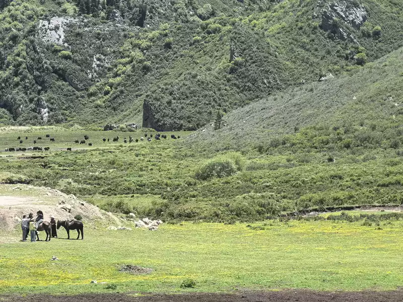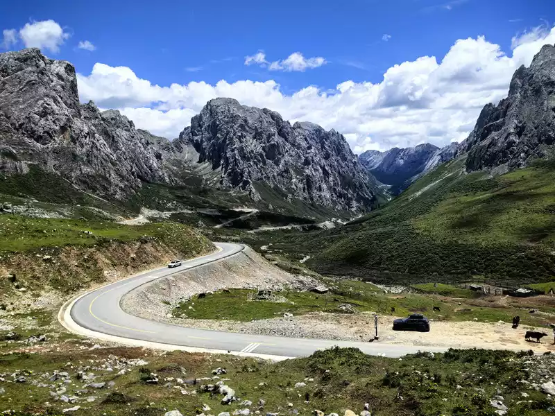 Yeliguan to Meiren Prairie, it is basically a mountain road, and after passing through the mountain is a vast prairie, which takes about 1 hour to drive. Get off the bus and have fun when passing the plateau elf parking point and the prayer flag tunnel parking point.