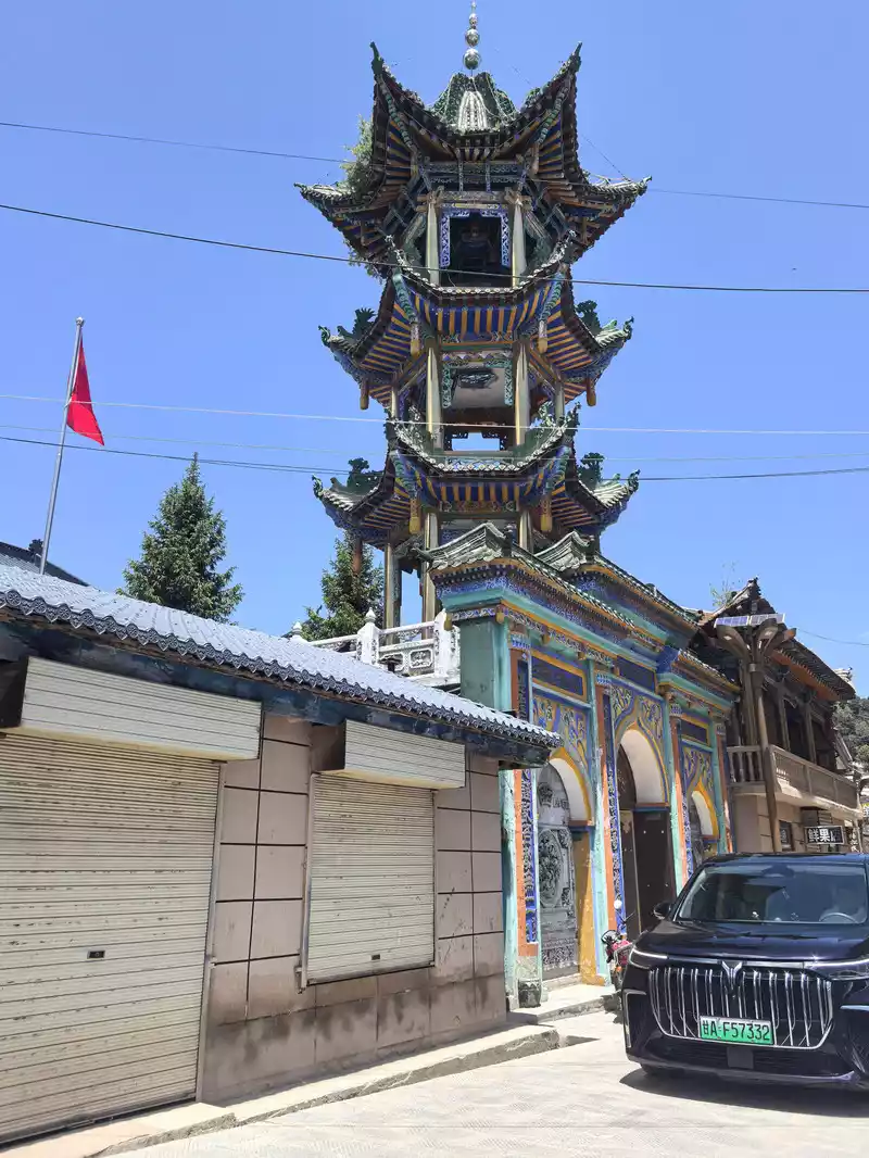 Meiren Prairie is a 1-hour drive, and at 1 pm, you will arrive at the Milarepa Buddha Pavilion in the cooperative city.Cooperative City is the capital of Gannan Tibetan Autonomous Prefecture, and there is a large parking lot next to the Milarepa Buddha Pavilion, and there are tourist buses one by one. . . Milarepa Buddhist Pavilion, if you are interested in Buddhism, you can spend 20 yuan to visit it, we didn't go in, we punched a card outside, and went to the city to eat beef noodles and set off for Labrang Monastery.