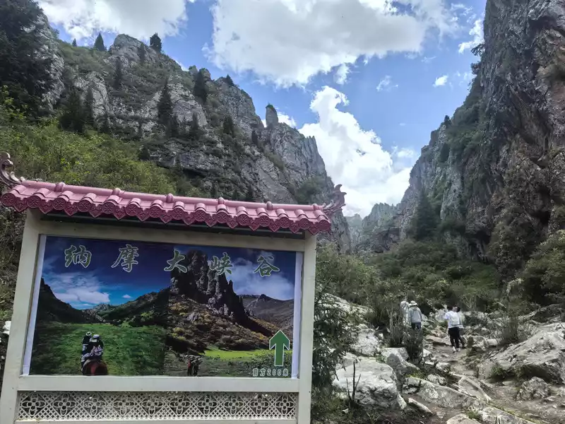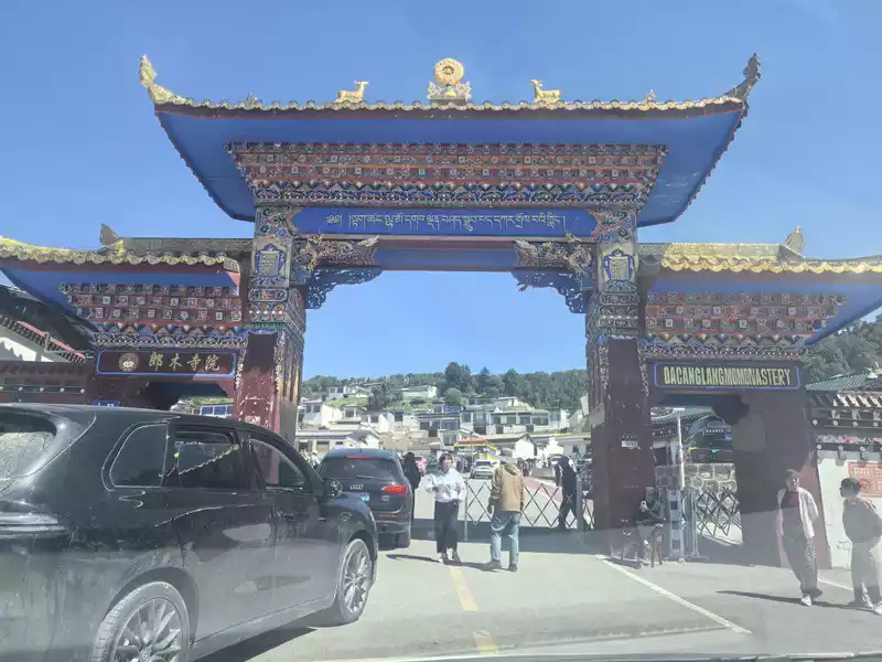 After lunch, I drove into Langmu Temple in Sichuan, and the ticket was 30 yuan per person, the same as Langmu Temple in Gansu. I didn't go to the Sichuan Temple, I drove the car directly to the parking lot at the entrance of the Namo Grand Canyon, this parking lot is very large, you can also visit the temple opposite, and there are many children at the door to explain to you. We started hiking the Namo Grand Canyon at about 2:30.