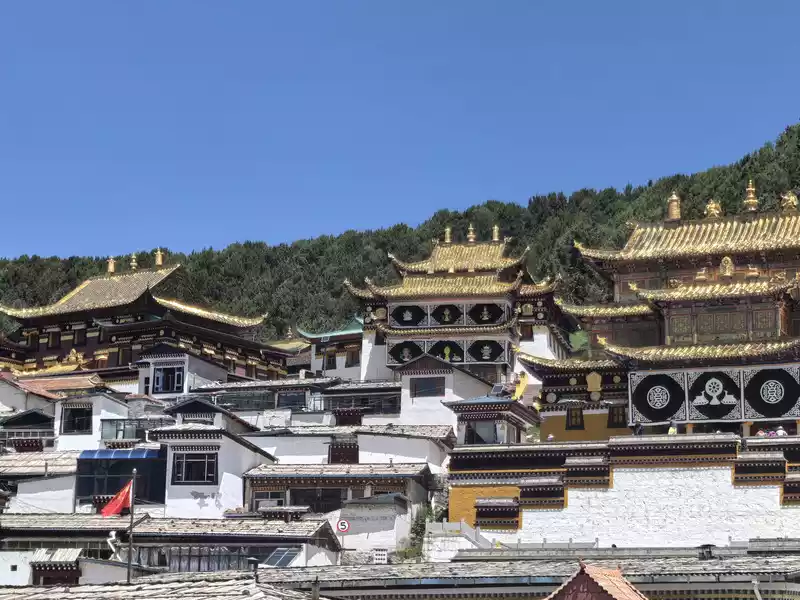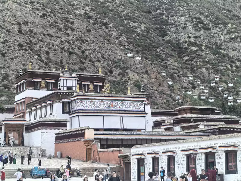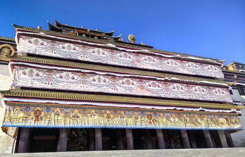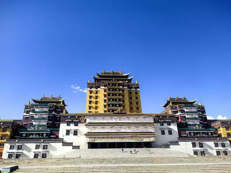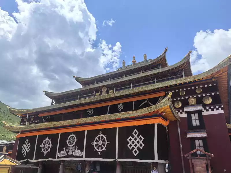 Gemo Temple is very close to Aba County, and many people also play with Lianbaoye for a day, and we are ready to visit today and tomorrow we can be in Lianbaoyeze for a day. The introduction of the Gemo Temple I quote an online introduction: Geographical location : Located in Gemo Township, Aba County, Aba Tibetan and Qiang Autonomous Prefecture , Sichuan Province , China , located in the core area of the Amdo Tibetan area. Historical Background Built during the Qianlong period of the Qing Dynasty (1790), it belongs to the Gelug (Huangjiao) monastery of Tibetan Buddhism, and is a branch of Labrang Monastery in Gansu . The religious status is in the same vein as Labrang Monastery, and is famous for its rigorous academic practice and teachings that pay equal attention to secrecy, and is an important Buddhist center in western and northern Sichuan.Core building: Maitreya Buddha Hall (Faxi Garden): 80 meters high, a total of 8 floors, certified by Guinness as the "largest Tibetan Buddhist Buddhist temple". Enshrines the 38-meter-high seated statue of Maitreya Buddha (the world's tallest indoor gilt bronze statue of Maitreya Buddha). It is rich in Buddhist cultural relics, thangkas and classics. Cultural value: Tibetan and Chinese architectural styles, rare Buddhist relics (such as relics, scriptures) and grand pujas (such as the New Year's prayer puja) attract scholars and believers to make pilgrimages.