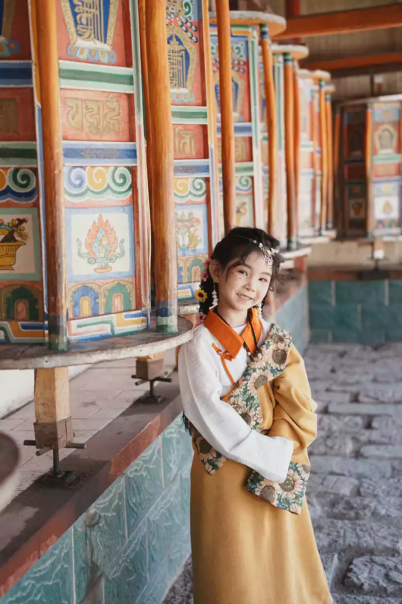 After the photographer took pictures of the two children, we walked around and took pictures in it by ourselves, and did not visit Gansu Langmu Temple in depth, so we returned to the town to return the clothes and have a meal.Gansu Langmu Temple and Sichuan Langmu Temple can be driven in, Gansu Langmu Temple needs to pay a parking fee of 5 yuan, it seems that Sichuan side confiscated it, buy a ticket and let it in. Those who have done some strategies should know that Langmusi Town is a place name, there are 2 Langmu Temples in the town, separated by the Bailongjiang River, Gansu Langmu Temple is also called Saichi Temple, there is a heavenly burial platform to visit, but it may not be possible to catch up with the heavenly burial ceremony. Sichuan Langmu Temple is also called Gerdi Temple, there is a physical living Buddha display, but it is not visible when you come, not always on display, there is a Namo Grand Canyon behind the Gerdi Temple, you can hike to find the source of the Bailongjiang River. I don't know if I remember correctly, you can Baidu or something.
