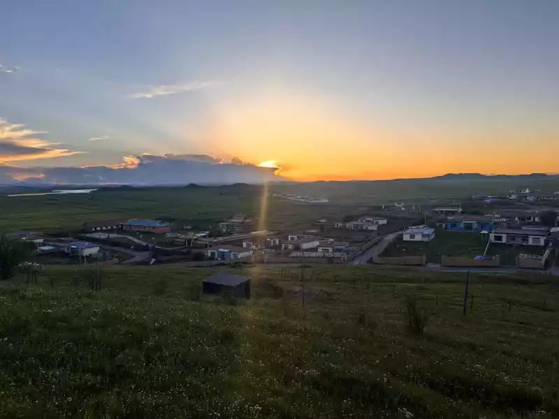 Fairy Beach is an open lawn on the hillside, full of small flowers in July and August. There is also a fairy lake going up, which is said to be very pitted, so we didn't go. Fairy Beach can overlook the entire Zhagana, and you can also rent Tibetan clothes and Tibetan makeup to take beautiful photos, which is very good when the weather is good. It rained a little when we first arrived, but after a while the sky was blue and cloudy, and the weather here was like this. You wear an umbrella, sometimes just to shade from the sun and rain (laughs) Fairy Beach is a good place to watch the sunset.