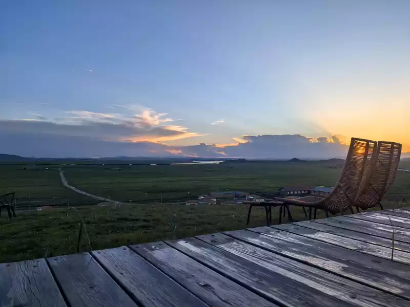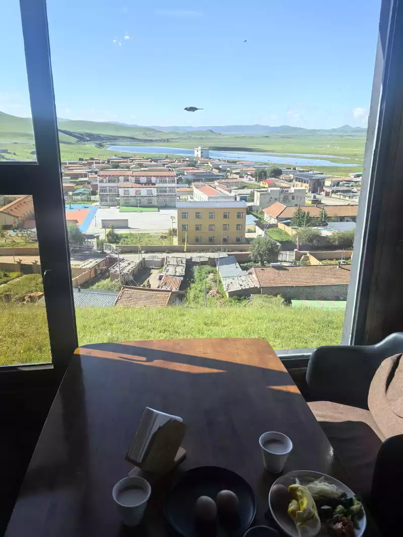 The homestay near Tangke is called Jorge Xianzhuo Homestay, located on the commanding heights of the village, 599 yuan including breakfast (slightly expensive). The scenery of the B&B is very good, the room facilities are okay, our family is actually quite low for the accommodation environment, not too much, we can accept it. It is still some distance from Tangke Town, and it is a 20-minute drive from the first bay of the Yellow River. We couldn't catch up with the sunset in the first bay of the Yellow River, so we decided to give up and eat some self-hi pot instant noodles in the homestay and prepare to rest.