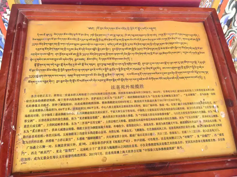 When we arrived, it was immediately 18 o'clock in the afternoon, and the visit time was until 18 o'clock, so we were a little in a hurry to visit, and we didn't see the Buddha bone relics upstairs. I only visited the outside of the Faxi Garden and the inside of the Faxi Garden, and you can take pictures outside, but you are not allowed inside. When we entered, it might be almost time, and no one was watching, so we could secretly take pictures, but after I entered, I was shocked by the scene inside, I didn't believe in Buddhism, but I felt the majesty and compassion of Buddha inside, an indescribable feeling. The front is a 38-meter-high Maitreya Buddha statue, there are two big Buddhas on both sides of the Buddha hall, and in the middle is the seat for the lama to listen to and study, and the Buddha hall is full of Buddha statues, scriptures, and exquisite butter flowers. I really can't see it. After a while, the gate at the entrance closed. We came out in a clockwise circle according to the order of the visit. There are also some pictures on the Internet, even if you have seen it in advance, when you walk into the Faxi Garden and see the Maitreya Buddha statue, you will still be amazed. I am not very good at expressing it, to sum up a sentence if I went to Aba County, leave some time to go to the Gemo Temple, it is definitely worth the trip, and the Gemo Temple is not charged, and the car can be driven to the gate of Faxiyuan for free, which is really "equality of all living beings" (we can go this day, it is not guaranteed that everyone can stop like this, my impression is that the guide says that it is to drive to the west gate of the Gemo Temple).