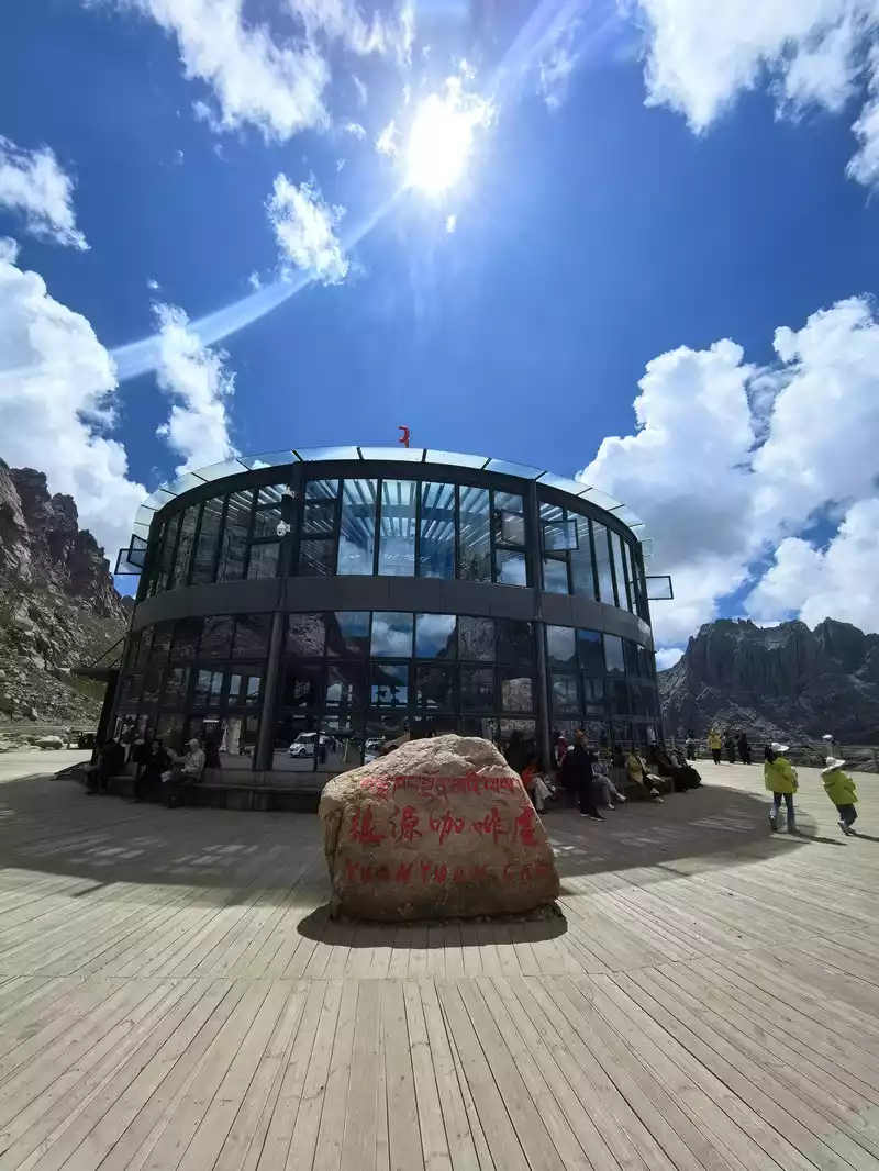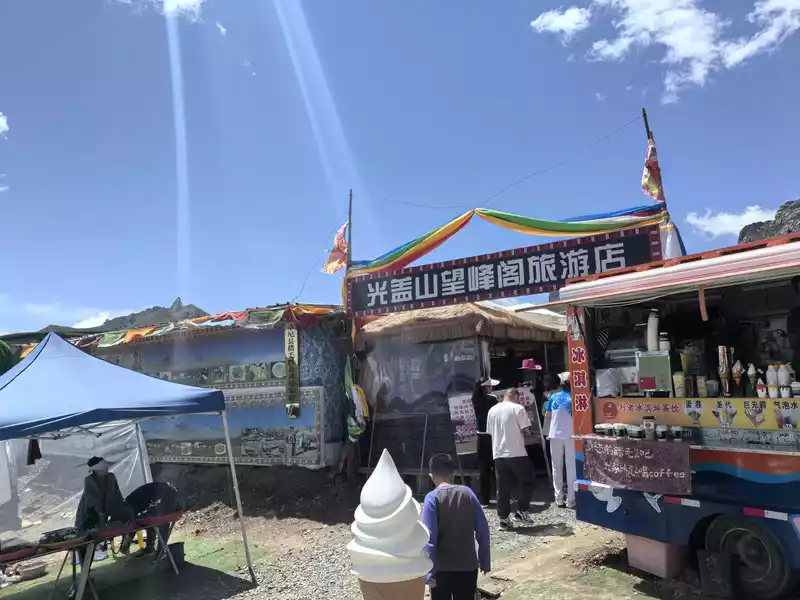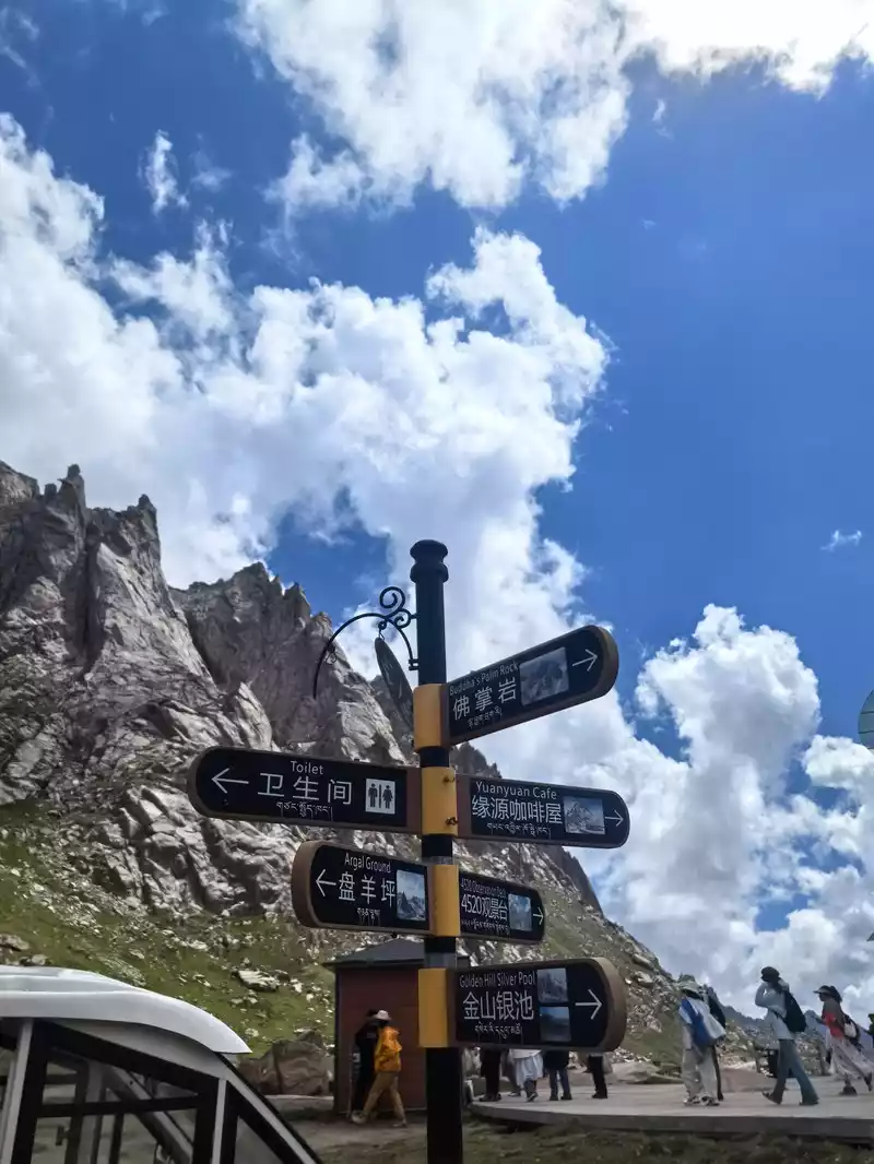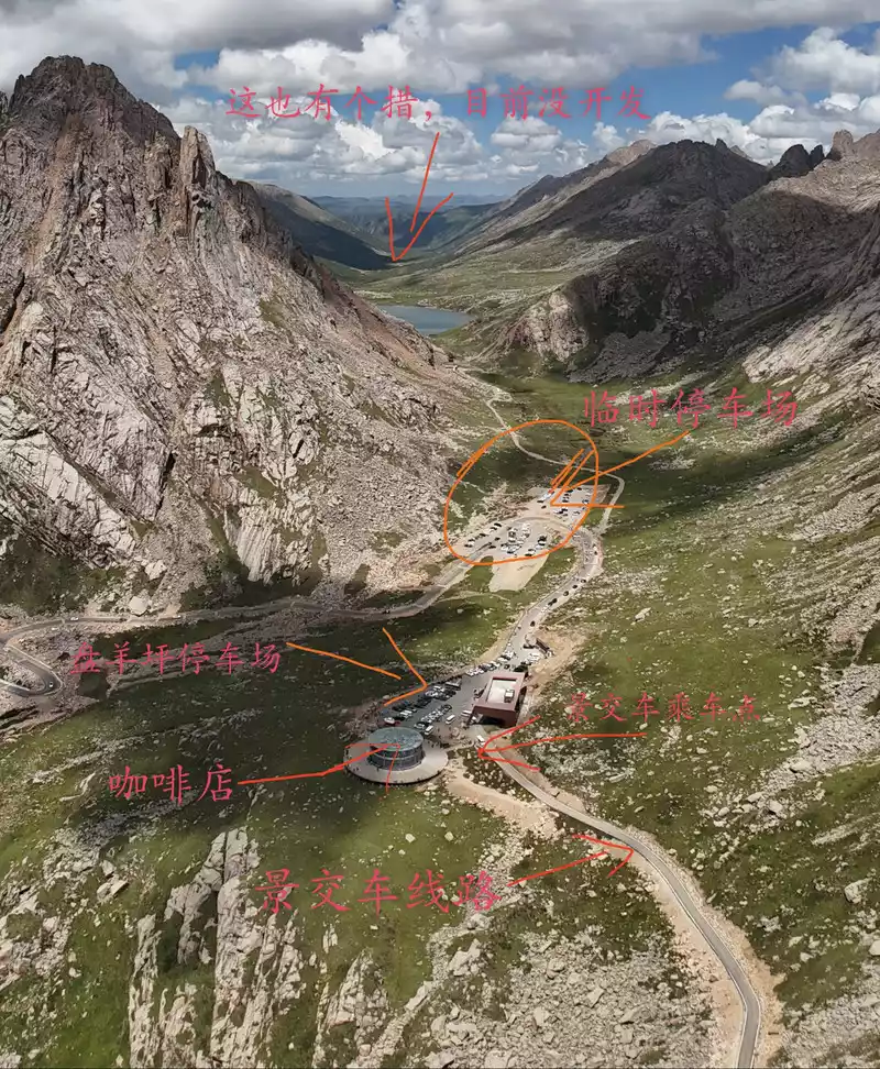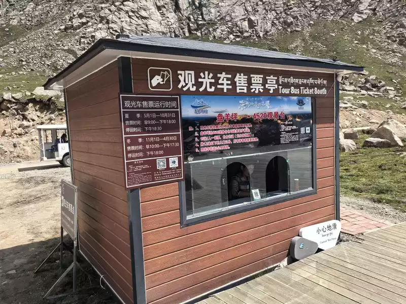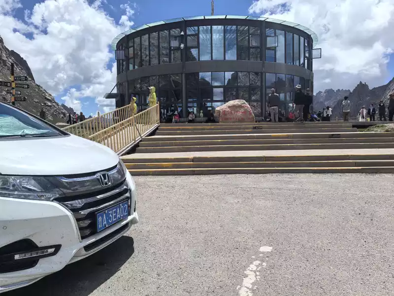 We set off from the hotel about 1 hour after breakfast in the morning, arrived at the gate of the scenic spot at 10 o'clock, bought a ticket to check the ticket to enter the scenic spot, the ticket price was 120 per person, half price for children, and free for two treasures, a total of 300 yuan. It takes a while to drive from the gate to see the scenery of Stone Mountain, along the way there are Baixianghai, Luoxia Lake, Huangya Beach and other attractions, these must be skipped first, and then play when you return, first go to the Heyuan parking lot, if there are many people on the day, you may need to wait in the Heyuan parking lot to drive to the Panyangping parking lot, Panyangping is the highest place where the car can drive. Further up, you need to take the scenery and deliver the car. If there is not much traffic on the day, you can drive directly from the Heyuan parking lot to Panyangping without waiting. We didn't intercept the queue there that day at Heyuan , so we drove straight up. But when I arrived in front of Panyangping, a staff member asked me to park the car in the temporary parking lot and not let me go further to Panyangping, on the grounds that the car was full there. You need to park in the temporary parking lot and walk 100 meters to the observation deck in Panyangping, which is where the coffee house is. The scenery is also next to the coffee house. Walking 100 meters, although not long, but there is a problem that the altitude is now 4,400 meters (the altitude of Gannan and northern Sichuan in the past few days was basically about 3,000, we basically didn't react, and the two children were even more alive). In addition, from Aba County to Lianbaoye and then to Panyangping, there are many mountain road detours, which are easy to get motion sickness. So when I arrived at this temporary parking lot, Dabao at home began to feel uncomfortable, I couldn't tell whether it was motion sickness or high reaction (finally determined to be high reaction), and the 4 oxygen tanks prepared in advance also came in handy, and then the 2 babies arrived at the 4520 observation deck, and Erbao was also uncomfortable and rebellious. After staying at 4520 for 15 minutes, I followed my mother down to the Panyangping parking lot, and the four oxygen tanks ran out of them. So after we parked the car in the temporary parking lot, we saw that there were many cars coming out of Panyangping, and there should be empty parking spaces on it, so we told the staff that the two children were uncomfortable and really couldn't walk, so they let us drive in. In fact, you can drive in if you break in or have a tough attitude, but there is really no parking space inside. We drove the car directly to the parking space closest to the coffee house, and went to the coffee house to buy some cakes and sausages for the children to eat and rest.