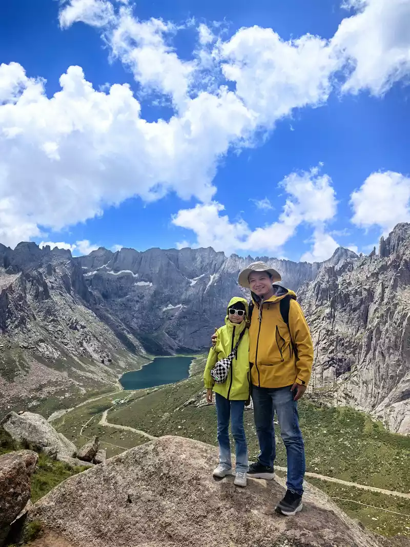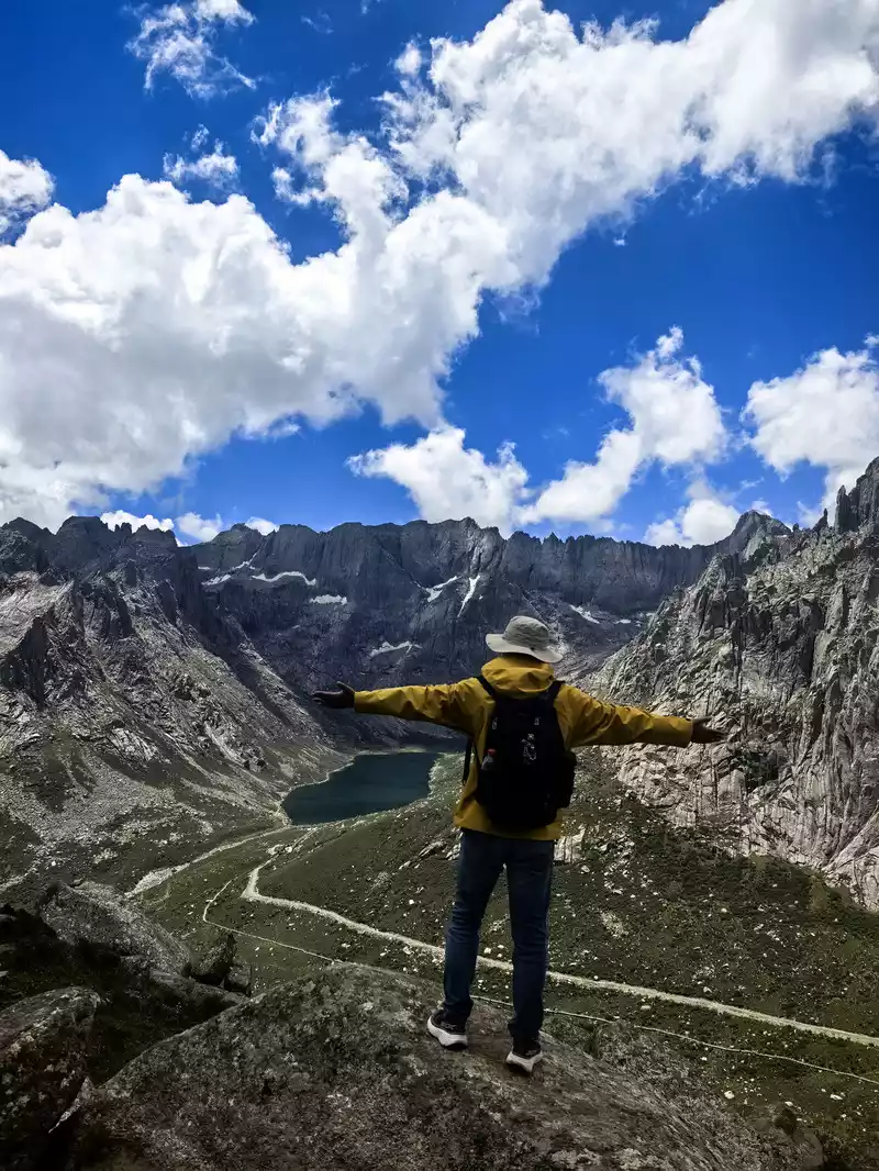Because the child was uncomfortable with Gao anti-rebellion, I followed my mother back to Panyangping after a while, and I was left alone with my mobile phone, action camera, SLR camera, and drone to take pictures at the 4520 observation deck I was still okay with altitude sickness, I had been to Tibet twice before, and I had been to the Everest base camp, and it was easy to handle the mere 4500 meters. Below is me at the 4520 Observation Deck and Zagaercuo Lake, and I took 2 time-lapse videos with DJI action4