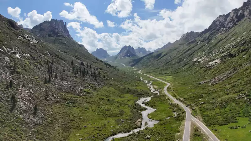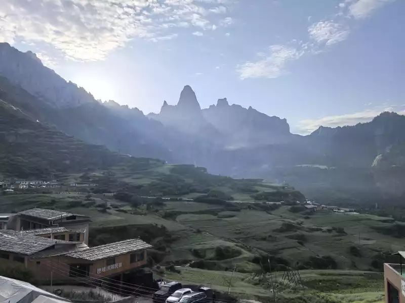 Turn through Lixiao Road ( Lixian to Xiaojin County) to the direction of Shuangqiaogou in Siguniang Mountain, After arriving at the hotel where I stayed, I had a meal and rested. Tomorrow, I will go to Shuangqiaogou for a quick stroll and then go to Dujiangyan .