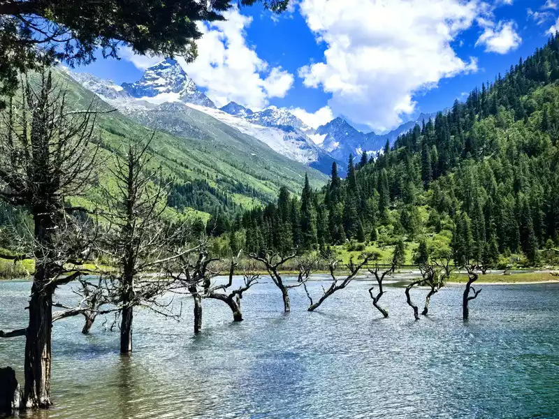 Lianbao Yeze Mountain is the remnant of Guoluo Mountain, a branch of the majestic Bayankara Mountains on the Qinghai-Tibet Plateau, with an altitude of between 3,500 and 5,369 meters, the highest peak of 5,369 meters, and snow all year round.It is a famous sacred mountain in Tibet, ranking eighth among the ten sacred mountains in Tibet and the first among the sacred mountains in the Amdo region. Also known as Yerjingzara, its Tibetan meaning is the peak of dignified jade, and it is a sacred mountain holy place worshiped by local Tibetans. There are natural landscapes such as Zhagarcuo, Panshi , Baixianghai, Bonsai Beach, Luoxia Lake, and Meadow Flower Sea in the area, as well as basic services such as cabins, catering, medical care, and emergency rescue services. It is a provincial eco-tourism demonstration area in Sichuan that is dominated by strange peaks and rocks, glacier relics, and snow-capped mountains and lakes.