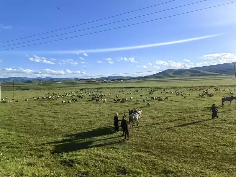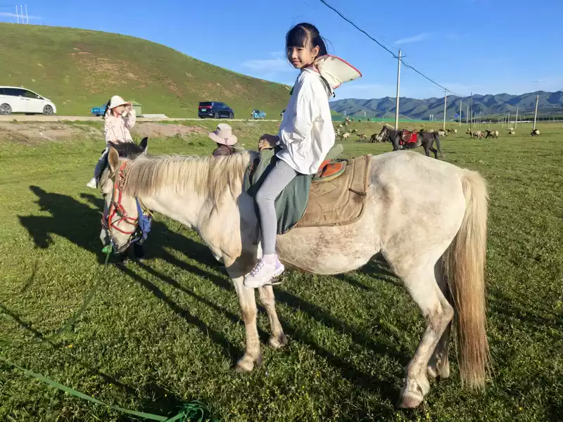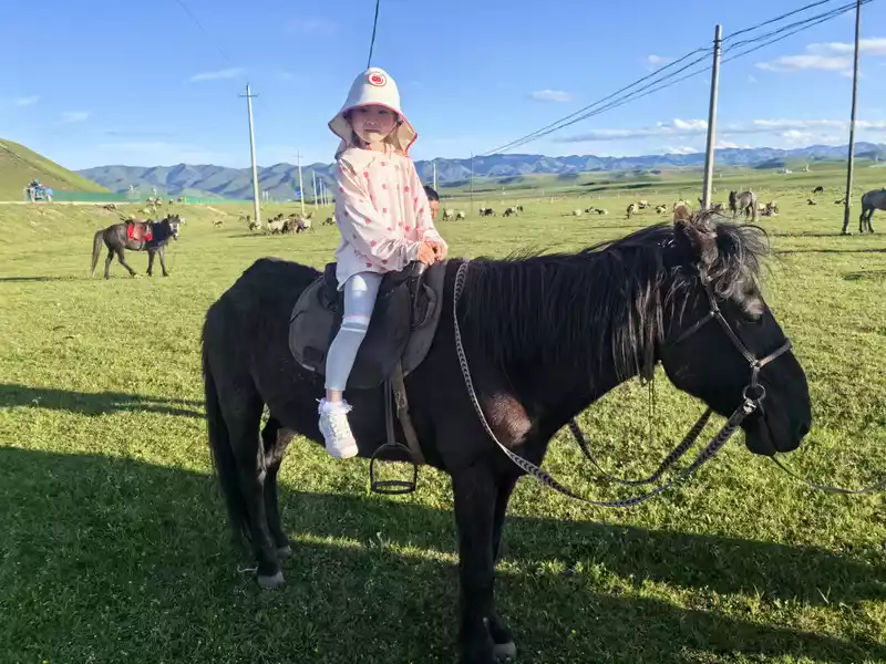 Coming out of Labrang Monastery, it is recommended to go to Zagulu Town after looking at the navigation, you can return to the same way and then go to Zagulu, about 2 and a half hours, but do not pass through the Sanke grassland. It takes 3 hours to go around the Sanke grassland to cooperate, more than half an hour, and it is dark here at night, and finally as originally planned, walk to the Sanke grassland. The Sanke grassland feels not very big, there are a lot of collectors on both sides, and the grade conditions are relatively good, this may be the serious commercialization mentioned in the guide, we didn't stop and continued to drive forward, and spent 100 yuan in a place where herders herd sheep to let 2 babies ride horses (laughing cry) (laughing cry) Later, the horses we passed from the Ruoerge grassland were 20 30,。。。 This 100 is expensive.