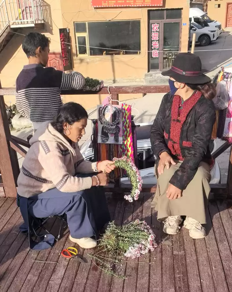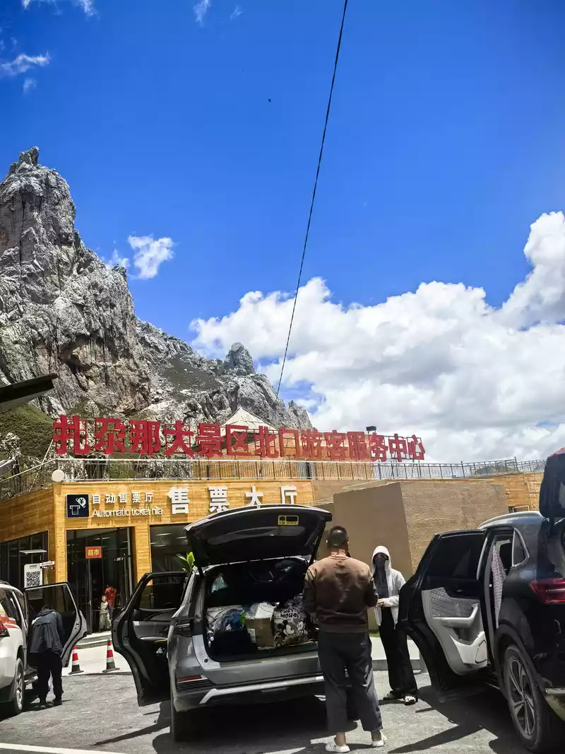 Breakfast is eaten in the homestay, simple flower rolls, porridge, pickles, milk and eggs, no problem to eat. After eating, I drove to the visitor center of Dongwa Village in Zagana, that is, under Fairy Beach, and the car was parked in the parking lot next to Tex, and the parking space was still quite tight. There are many colored ropes for women's hair in the Zaga scenic spot, 2 yuan a piece, and you can get a discount if you braid more. All three of them made it up.