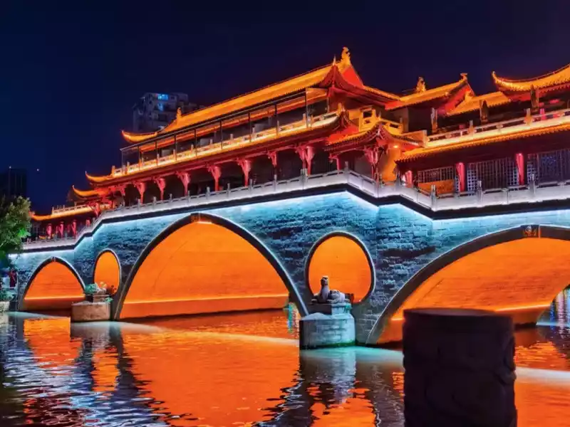✅ Nine Eyes Bridge: The Spirit of the Night is Here! The lights of the Anshun Covered Bridge are reflected on the river, and the bar street next to it begins to be lively, the sound of music is mixed with the sound of the river, and Chengdu's nightlife officially begins!