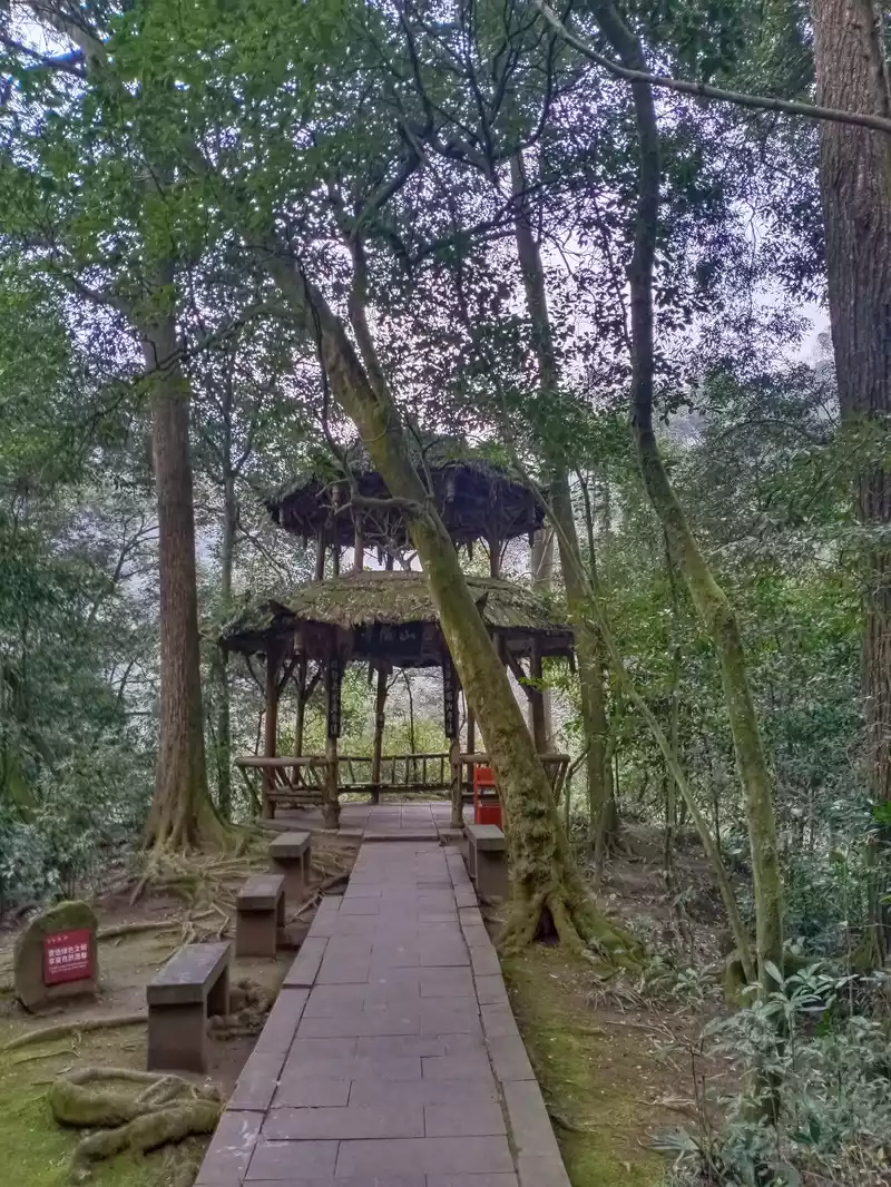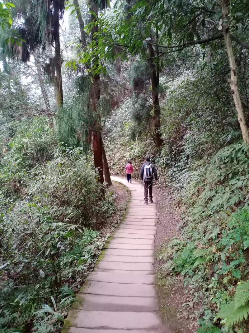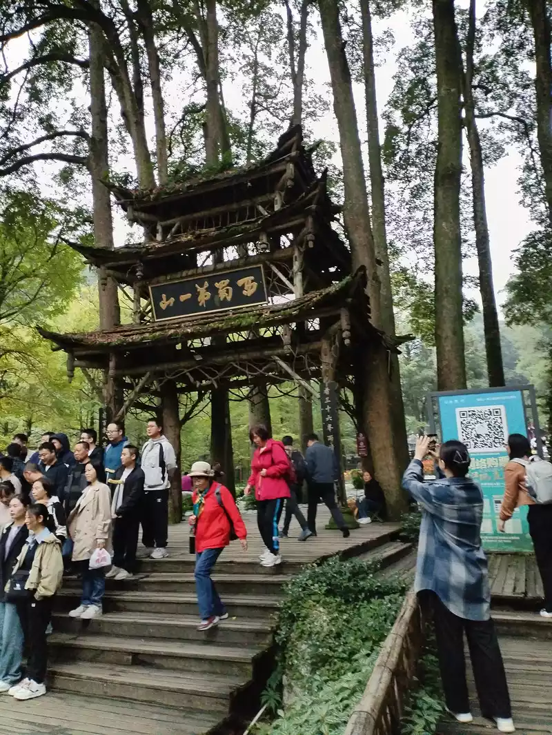 After visiting Sanxingdui, I navigated to Qingcheng Mountain, which took less than 1 hour by car; We went to the town for a simple lunch, and when we parked in the parking lot, some locals said that they could take us up the mountain from the back mountain, not from the front mountain to the ropeway, and the back was closer. We drove and followed him, and after arriving at the parking lot (I can't remember the exact location of the mountain), it was indeed much closer to walk up the mountain from here, and the tickets were cheaper, 50 yuan per ticket for adults, and free for children.