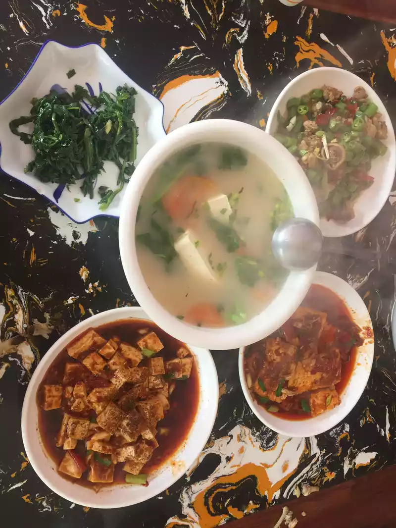 "Shu Road is difficult, difficult to go to the sky" The poet Li Bai's Shu Road is difficult to make the Shu Road famous all over the world, Jianmen is in the middle of the Shu Road, known as "Jianmen is dangerous in the world", this time from Guangyuan into Sichuan, as long as time permits, you have to climb the bird road, walk the ladder, and experience the steepness of Jianmen. Arrive at Jiange Town at noon, have lunch first, and the tofu banquet is ready.