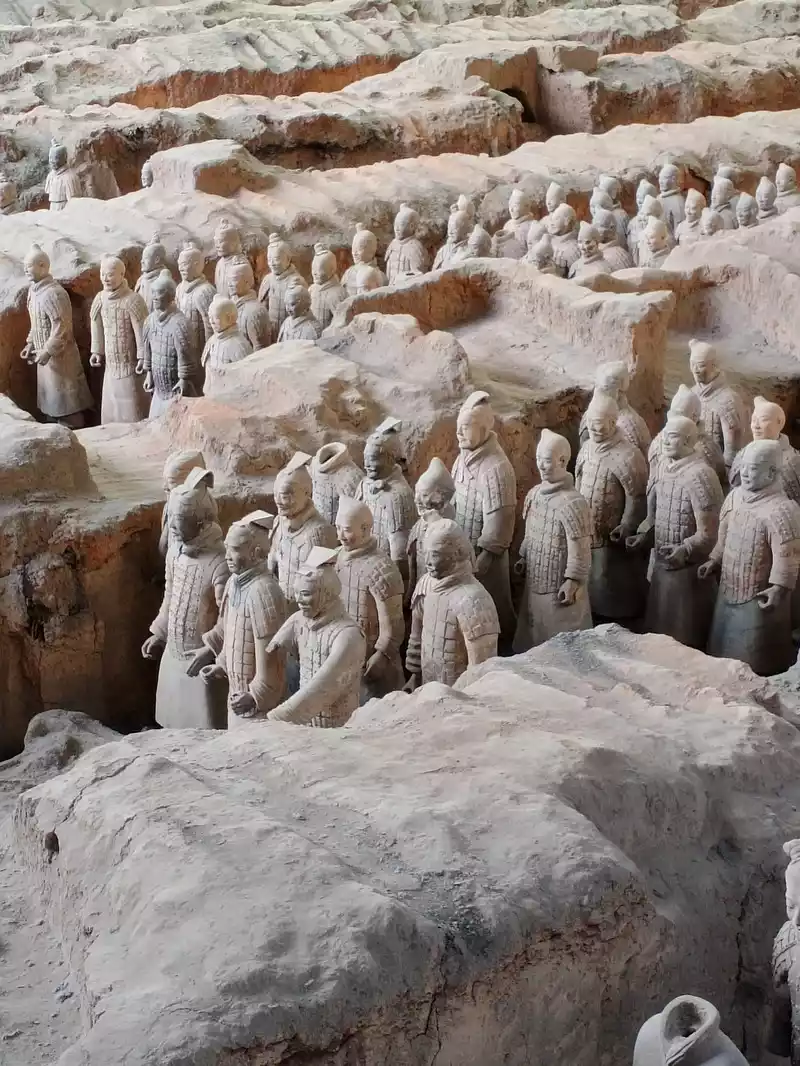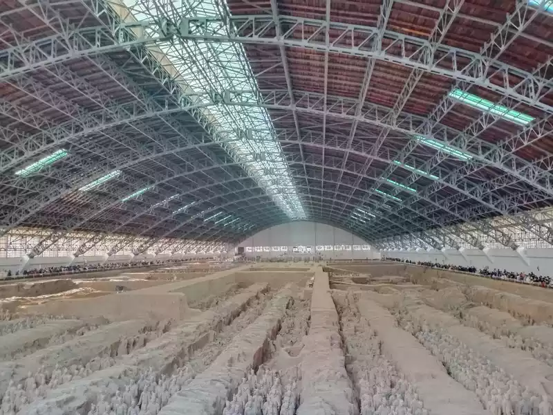 The Terracotta Warriors and Horses Museum of Qin Shi Huang has a total of 3 terracotta pits No. 1, 2 and 3. Pit No. 1 is a main army formation of chariots and infantry, with a total area of 14,260 square meters and about 6,000 life-size terracotta figurines. Pit No. 2 is the essence of the Qin Warriors Pit, covering an area of 6,000 square meters, consisting of four units, and the four phalanxes are mixed by chariots, cavalry, and crossbowmen, which are strictly orderly and impeccable. Pit No. 3 is the command system of the military formation, with an area of 524 square meters.