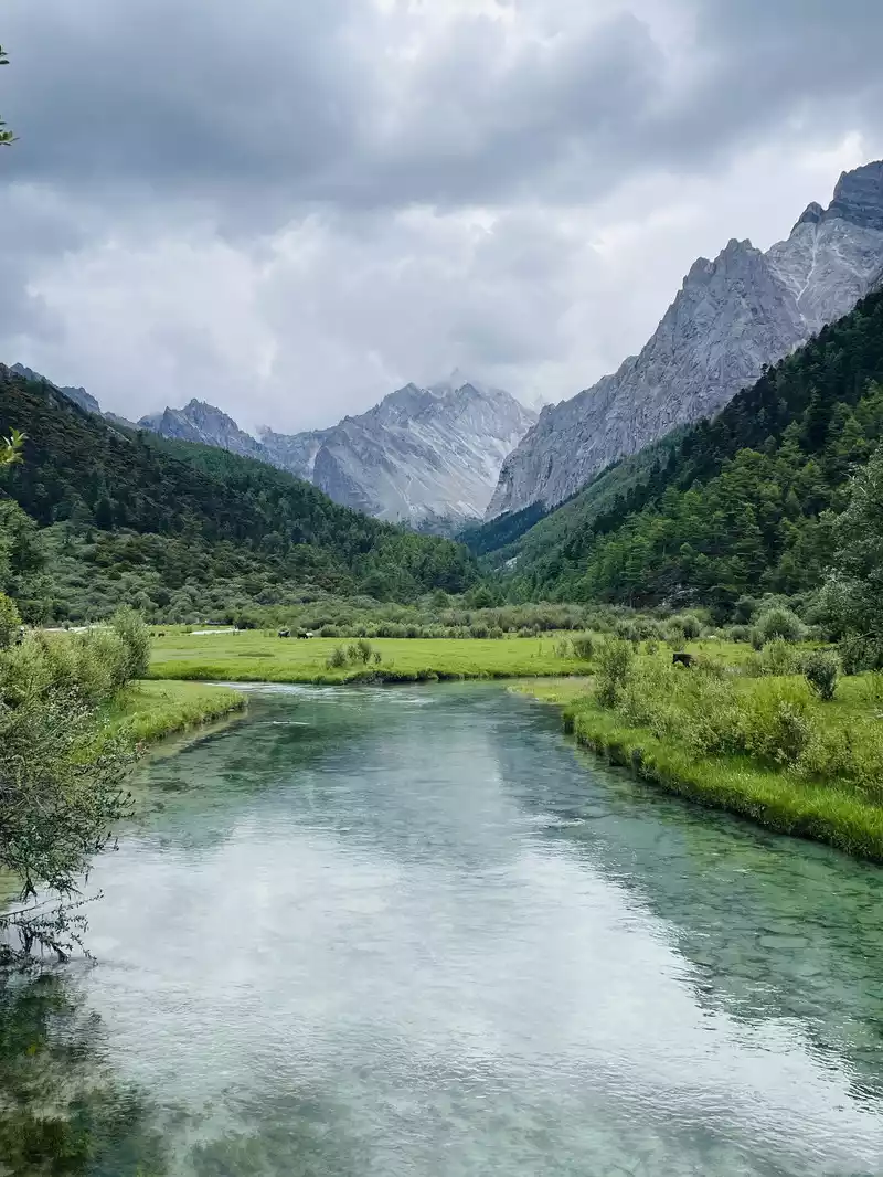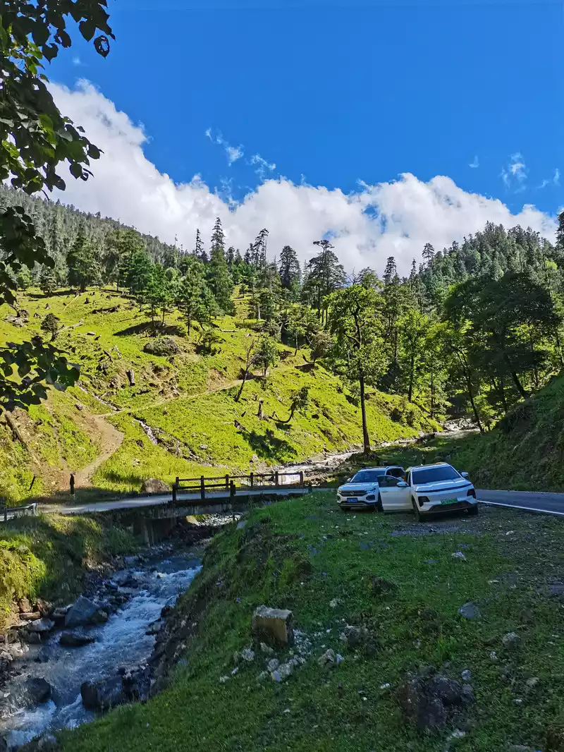 With our physical condition, we plan to take a short line and then take a car to the Luorong Cattle Farm. In the morning, drive to the gate of the scenic spot, take a sightseeing bus for about 1 hour to Guanbeng Station, and the altitude quickly climbed to more than 4,000 in the 36-kilometer distance. After getting off the bus, my husband and I both felt a little want to vomit, so we took a break and walked about 700 meters to the filming location of "Passing by Your World" - Chonggu Meadow, which is a meandering stream, like a natural bonsai.