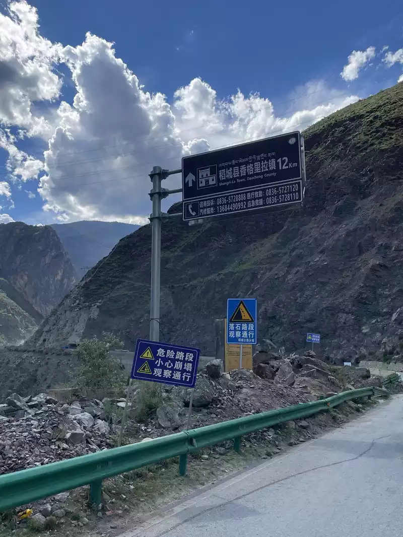 Traffic conditions: From Lugu Lake to Guzeng Township, passing through Qiansuo, Wujiao, Wachang, etc., the navigation shows that there is no nameless road, there are not many cars on the road, but the mountains are high and the roads are narrow, the cliffs are deep valleys, and the driving must be highly concentrated. Along the way, the alpine forests, grasslands and Tibetan villages are picturesque, and there are many stops to watch the scenery. Passing through Muli Temple, I was in a hurry and gave up the tour. After Guzeng Township, enter National Highway 227, a number of peaks above 4,000 meters above sea level, continuous sharp bends in canyons and cliffs, dozens of kilometers of long downhills, and dozens of kilometers of rockfalls near Shangri-La Town, all make people nervous. At an altitude of more than 4,000 meters, near the fork to the Mana Chajin Observation Deck (the best place to see the three sacred mountains of Aden, you can appreciate the majesty and holiness of the sacred mountains from a near-level perspective), you are fortunate to have a clear view of the magnificent beauty of the snow-capped peaks of the three sacred mountains of Aden reaching the sky. There are still about ten kilometers to the observation deck, and I thought about rushing and did not go to the observation deck.