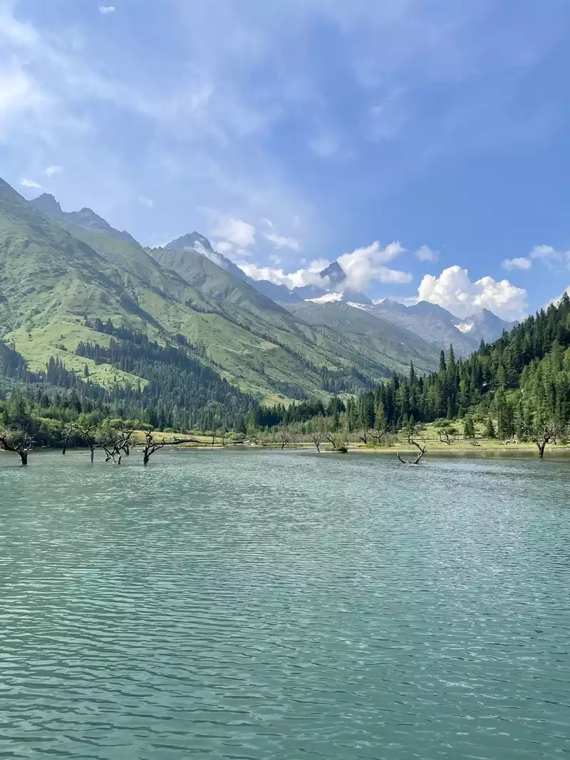 We rushed into the scenic spot before 3:30 (no entry after 3:30), and took a sightseeing bus directly to the deepest part of Shuangqiaogou - Sequoia Forest Station at an altitude of 3,840 meters, which is nearly a kilometer away from the 2,900-meter altitude difference between the ditch and the mouth of the ditch, surrounded by snow-capped mountains and sequoia forests. Then take a car down to tour, stroll along the plank road to watch, and check in turn to check in the scenic spots such as Burada Peak, Sigu Nacuo, Longzhu Cuo, Ginseng Fruit Flat, etc., along the way there are snow-capped mountains of different shapes, wide meadows, clear and quiet lakes, bonsai-like century-old sea buckthorn trees, and the beauty of nature hits the heart again.