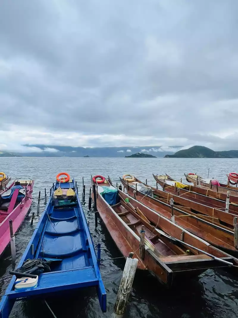 Tour: All the attractions of Lugu Lake are along the lake, and the main activities include sightseeing around the lake, taking the pig trough boat, taking the ropeway Denggem Sacred Mountain, and the Mosuo bonfire party. On the same day, we took a pig trough boat to Ribby Island at Sanjia Village Wharf, watched the water outlet, admired the water poplar flowers, and then drove around the lake for sightseeing.