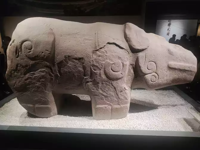 On the morning of the fifth day, we took the express train back to Chengdu, and then took the subway to Tianfu Square Station to visit the Chengdu Museum. Chengdu Museum is the largest comprehensive city museum in southwest China, with three permanent exhibitions: "Flower Chongjin Guancheng: Chengdu History and Culture Exhibition", "Shadow and Dance Vientiane Puppet Show: Chinese Shadow Puppet Exhibition", and "Man and Nature: Behring Donation Exhibition". In the folklore section, there is about Chengdu food, "After the tea and the wine plate, there are three meals in total." I have tasted all the marinated chicken and bacon, and I still say that my stomach has been upset for several days. "Chengdu people have a long tradition of advocating food. In the early Qing Dynasty, "Huguang filled Sichuan" brought ingredients and food customs from all over the world, the fusion of northern and southern cuisines, and the competition of cooking skills. At the end of the Qing Dynasty, the Republic of China formed a hundred dishes and flavors, one dish and one style, and the "Sichuan Flavor Authentic" was known for its "taste". From mansion dishes to dam banquets, from home-cooked flavors to street food, numb, spicy, hot and fresh, sour, sweet, salty, fragrant and salty. There are two special exhibition halls in the shadow puppet section, which show the production process of shadow puppetry in detail, the characters and animals in the shadow puppet play are lifelike and ever-changing, and there is a video dedicated to showing how difficult actions are made and performed, such as looking in the mirror, changing clothes, killing heads, etc., which is breathtaking. In particular, impressive is the treasure of the town hall "Stone Rhinoceros", unearthed on the northeast side of Tianfu Square, the stone carving is 3.3 meters long, 1.2 meters wide, and 1.7 meters high, with a plump and strong torso, thick and short limbs, and carved cirrus patterns on the lower jaw and forelimb torso. "Huayang Guozhi Shu Zhi" records that "King Xiaowen of Qin took Li Bing as the governor of Shu...... Five stone rhinoceros horns were made to ward off water crystals. "The stone rhinoceros may be related to Li Bing's water control, and has extremely high archaeological research and artistic value. When in Dujiangyan, the tour guide also mentioned the legend about the stone rhinoceros, the ancients believed that the rhinoceros could "divide the water and avoid the waves", and its horns could shine on the water monster, so the stone rhinoceros was placed on the shore to suppress the flood, after being unearthed in 2012, Chengdu rained frequently, and was jokingly called "the divine beast was displaced to cause flooding", reflecting the continuation of the legend in contemporary times. In addition, there are cultural and creative areas on each floor of the museum, where you can buy souvenirs. After visiting the museum, we had dinner in the nearby business district, and then returned to the Orange Hotel to check in and take a break.