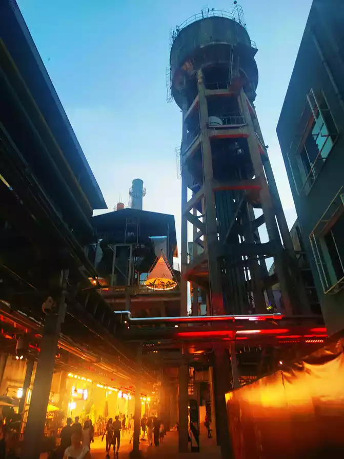 In the evening, we took a taxi to the eastern suburbs of memory. Dongjiao Memory, formerly known as Chengdu Red Optical Tube Factory, was established in 1958 with the assistance of the Soviet Union, where the first black and white picture tube in New China and the first color picture tube known as the "atomic bomb" of the electronics industry were born. When the red light factory was at its most glorious, the roar of machine operation sounded from morning to night, and the trucks flowed endlessly, once enjoying the reputation of "Shougang in the north and red light in the south". It has changed from an industrial site to a trendy holy place, witnessing the changes and development of Chengdu, and still retains the Soviet-style architectural style and industrial relics such as old machine tools and tanks, as well as the Dongfanghong 1519 steam train, aircraft model, etc., and has become a national 4A-level cultural and creative park. When industrial style meets cyberpunk, the collision of graffiti walls and old factories, and the old photo exhibition in the memory corridor, history is reborn in contemporary art. Container blocks, light and shadow art exhibitions, and e-sports spaces constitute the check-in universe of Generation Z.