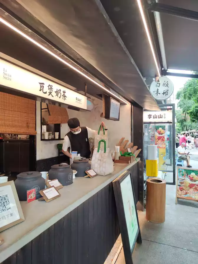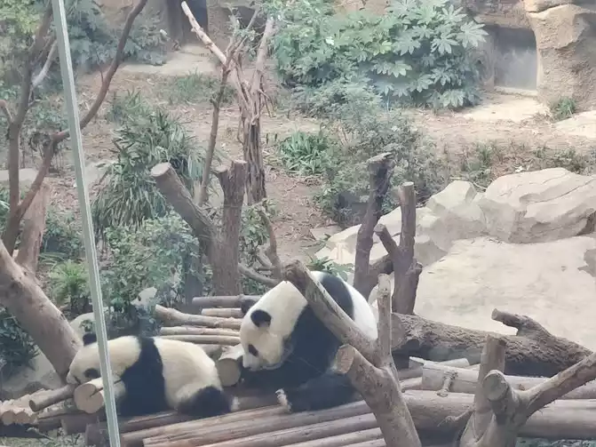 Early on the third morning, we took a taxi to the Panda Base, which is located in the northeast of Chengdu, in Chenghua District. The driver who picked us up was very enthusiastic, he was an interesting person and told us many stories about Chengdu along the way. He said that there are more than 200 giant pandas in the panda base, the most special is the Internet celebrity panda Huahua, which can bring tens of billions of income to the base every year, which can be called a national treasure among national treasures, but it is not easy to see it, in the summer it will only come out early in the morning to perform for a short period of time, and it will be brought back after the temperature rises, and we still go too late to see it. Pandas are now well treated and well protected, but in the nineties they were relatively poor, and pandas were trained to perform shows like ordinary animals, when pandas were whipped and brutally trained to this day is almost unimaginable. Speaking of eating, he is quite proud of the taste of Chengdu, he told us that even if we don't do any strategy, as long as we walk into the streets and alleys, we see that there are still more people going in to eat, basically we will not step on the thunder, because the restaurants that have been open for a long time in Chengdu have two brushes, and the taste here is generally at a high level. The reason is that Chengdu's climate and geographical conditions are particularly suitable for the growth of spice crops, and the people here have a long history of exploring and using spices. As for the famous Sichuan opera face changing, he said that in the past, mainly people in the area of Chunxi Road liked to watch plays, and there was a famous storyteller who performed there (I don't remember the specific name), and now there are several theaters with performances, and the price is similar, the most authentic should be the Jinjiang Theater near Chunxi Road.Speaking of the place to drink tea, he mentioned People's Park, he used to go to People's Park when he met his friends when communication was not developed, he is now in his 50s, he still looks young, and he should be a native of Chengdu. But now there are more tourists from other places in People's Park, and more locals go to Wangjiang Park to drink tea.