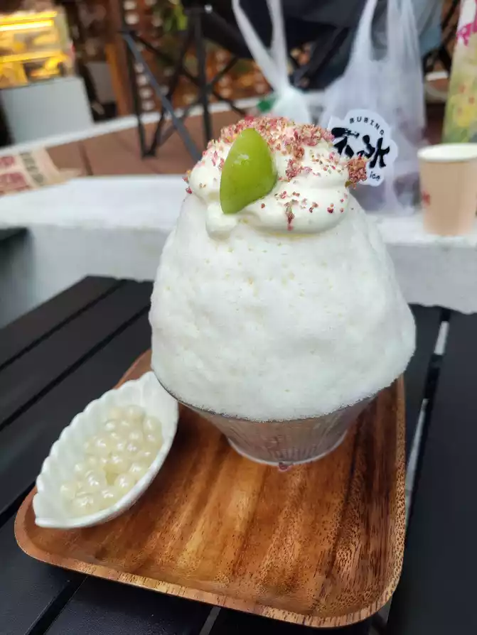 After sitting for a while, we got up and went to a market next to buy snacks such as "scissor potatoes" and "tortillas", which were very cheap, very filling, and tasted good. Seeing a long queue at the door of a "Wang Ma Shredded Roast Rabbit", we also went to join in the fun and bought a roast rabbit. Tired of walking, we returned to Fanghua Street to eat some cold drinks and coffee by the way, first went to a cold drink shop called "No Ice", ordered a shaved ice, I felt that the workmanship was complex, there were many small ingredients, and the taste was rich in layers, which was definitely at the top level.