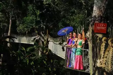 Wangtianshu Tropical Rainforest Scenic Area is the first scenic spot in Xishuangbanna to appreciate the soul of the tropical rainforest from water, land and air in an all-round way; It is a scenic spot integrating sightseeing, folk experience, and leisure vacation. Wangtianshu Scenic Area has the "four wonders" of tropical rainforest----- slab roots, strangulation, parasitism, and saprophytic phenomena; The beauty of the Nanla River, known as the "Amazon of the East", and the wonder of the water passing through the tropical rainforest make tourists linger; The original folk customs and original ecological humanities of the Dai people, Hani people (Aini people, Bu Guo people, Paijiao people), Brown people (Kemu people, Kami people), Yao people, and Yi people mobilize the curiosity of tourists to the extreme with their mystery.