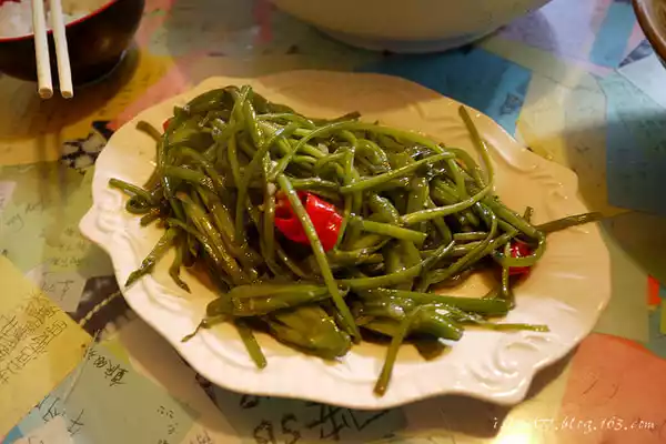 the way down the mountain, I passed a small restaurant and went in for lunch. The above is the famous water-based poplar, a vegetable that is indeed quite delicious. However, boiled fish is average, greasy, and the fish is not fresh enough. The rice noodles taste pretty good.